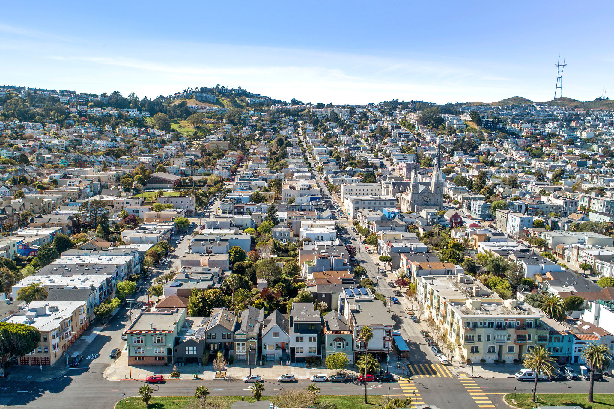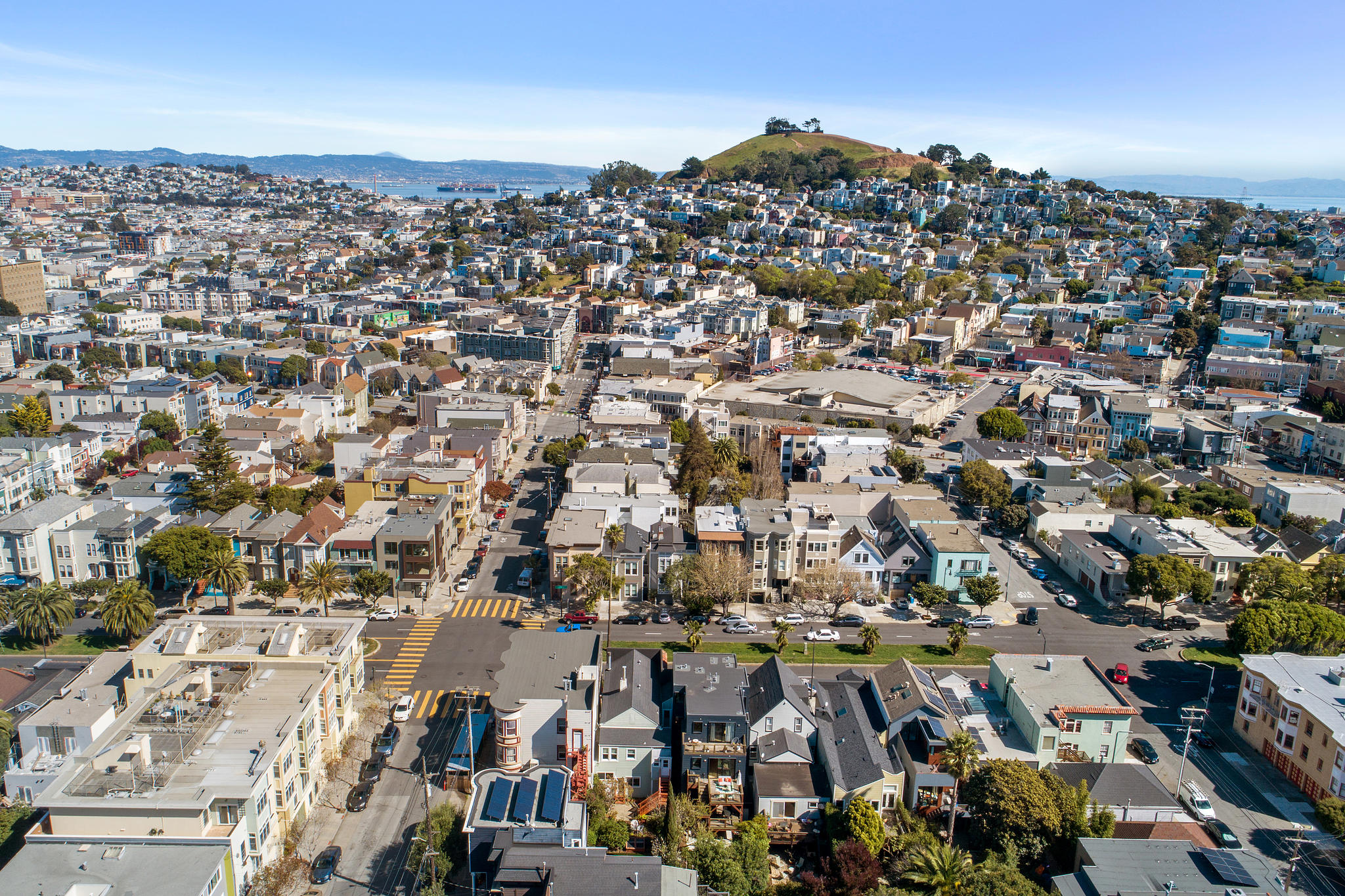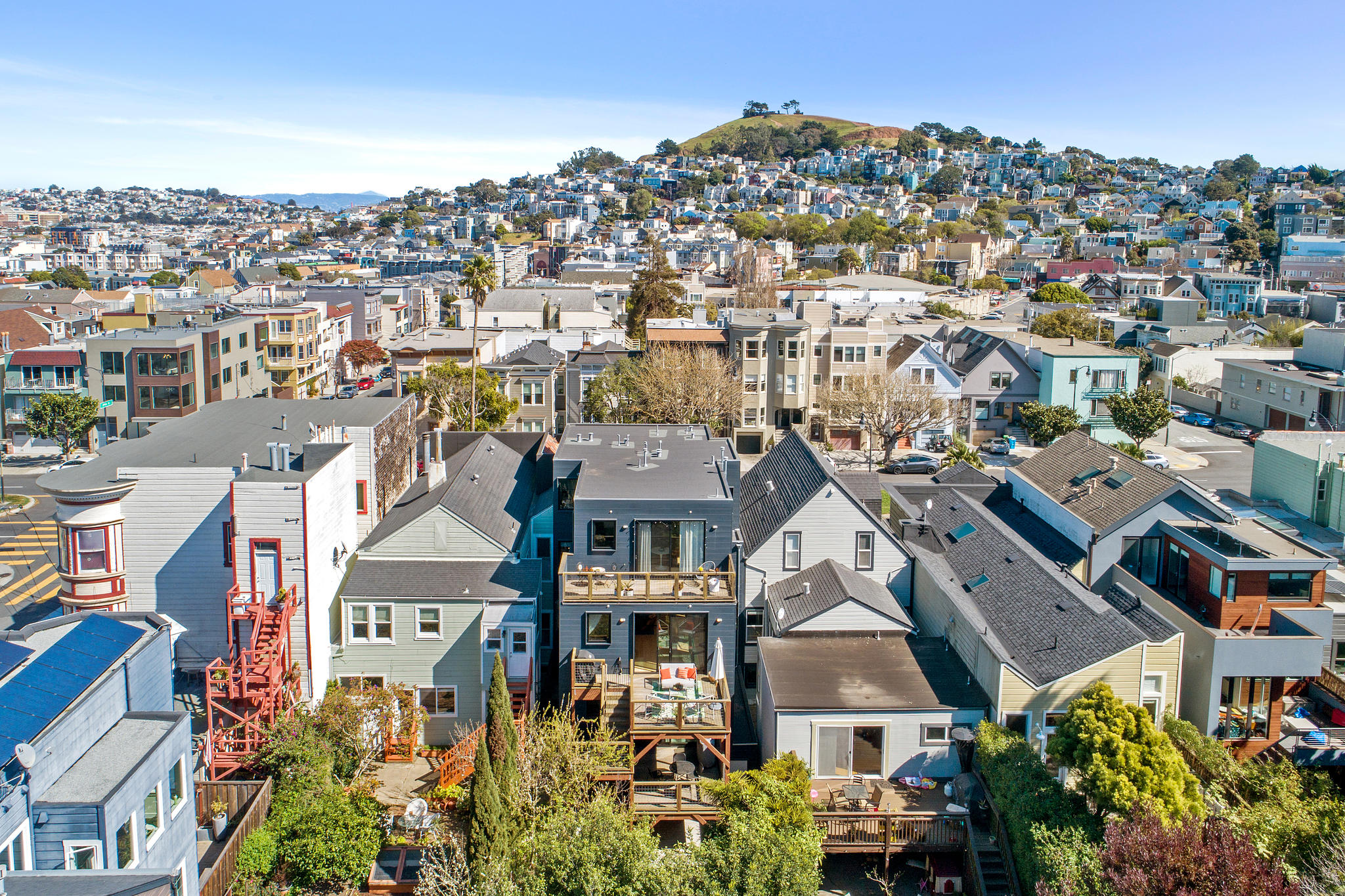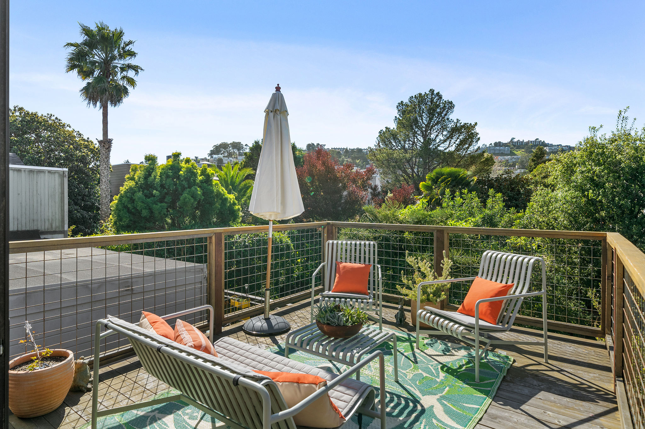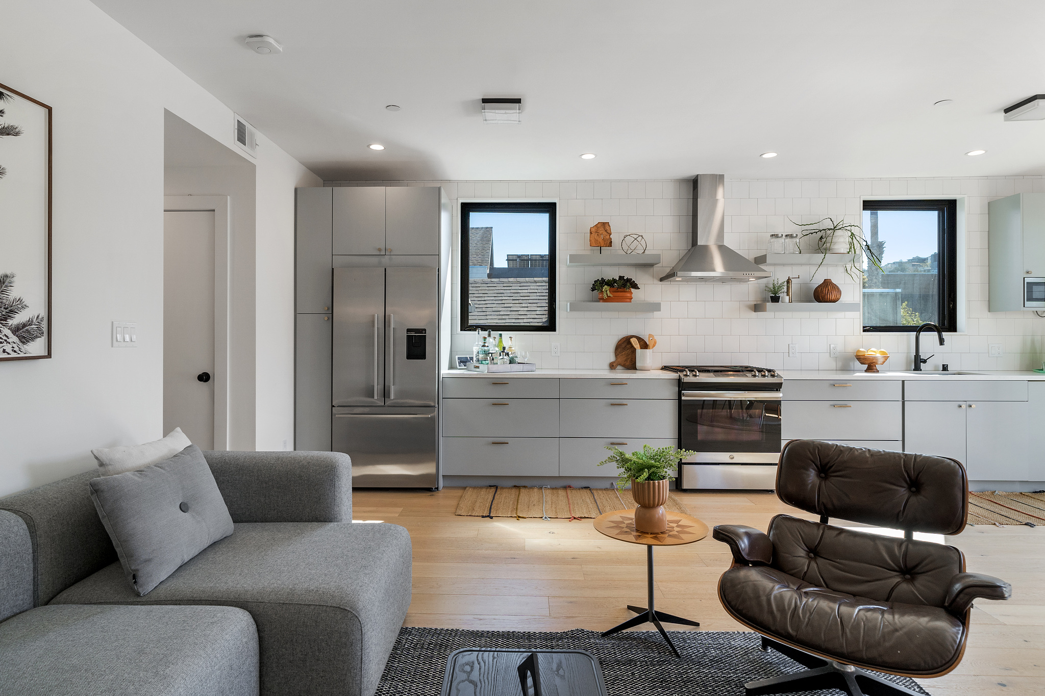 Occupying the entire second level of this renovated contemporary building is this spacious and bright three bedroom, two bathroom home. The heart of this home is the open concept living space. This light, bright great room features a modern kitchen with expansive countertops and luxury level appliances, a dining area and living space, with a large sliding door opening onto a West-facing private deck, perfect for the warm Noe Valley weather. Views of verdant tree tops and expansive sky abound. One ensuite bedroom and two additional bedrooms or offices- all with clean, modern lines and newer windows. Other amenities include in-unit washer and dryer, additional storage, and one car independent garage parking with an ev charger. One block from area shops, restaurants, and public transportation makes this a perfect city home. This TIC represents a 37% ownership in the three unit building.