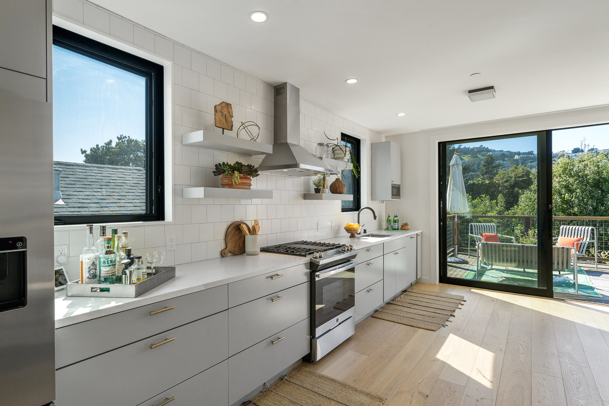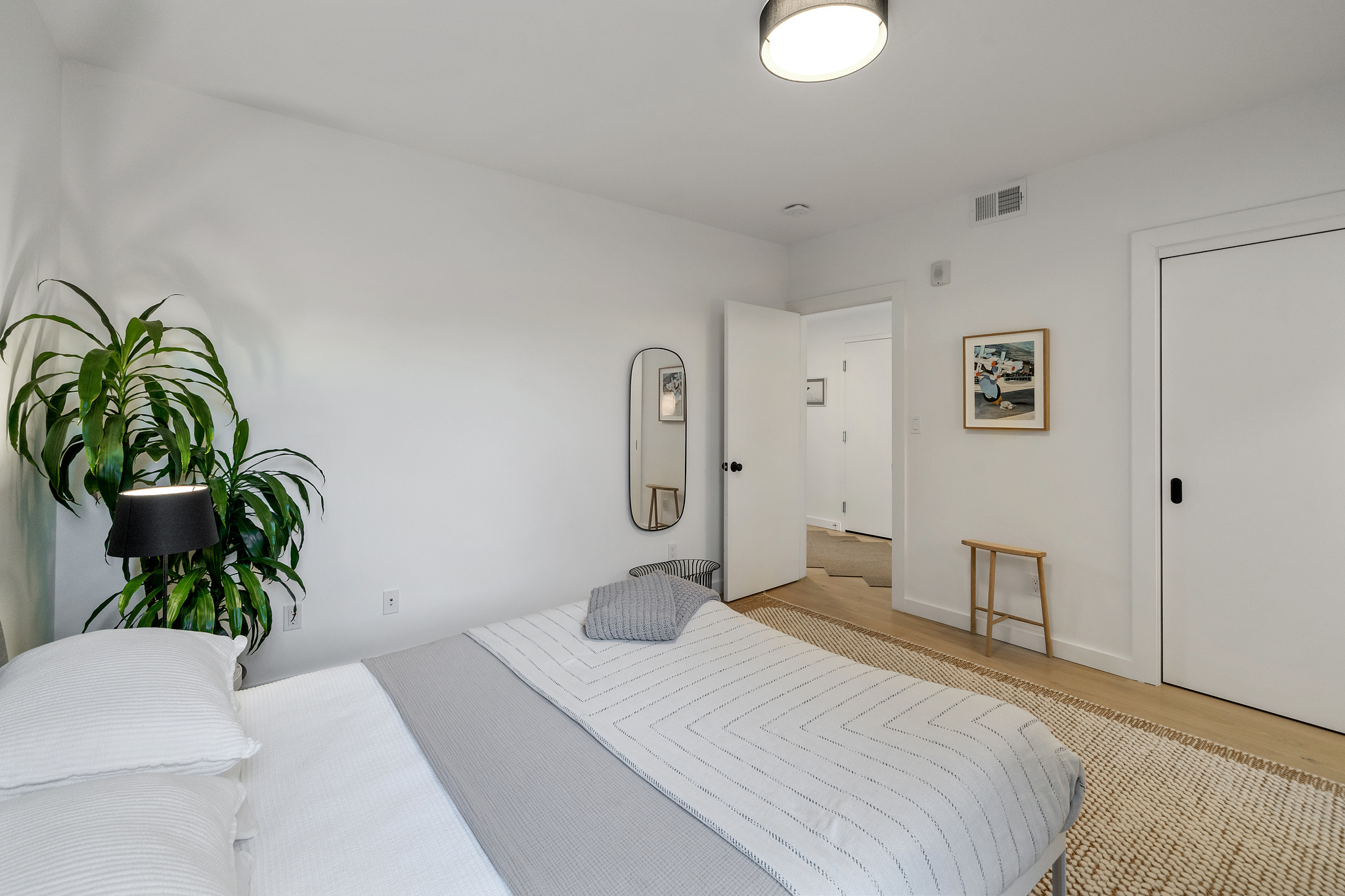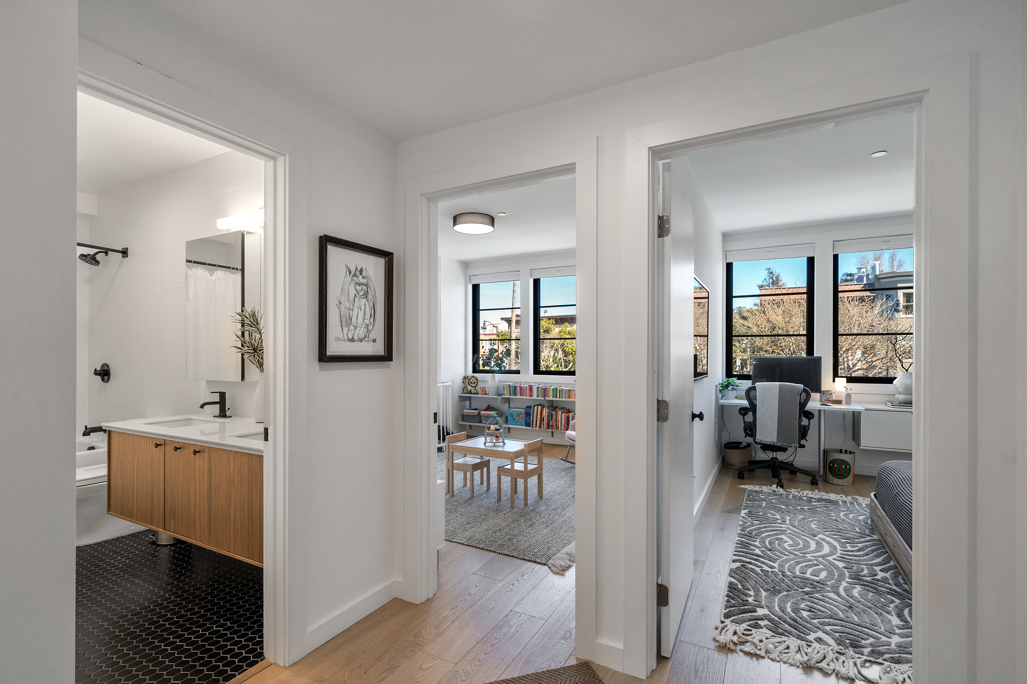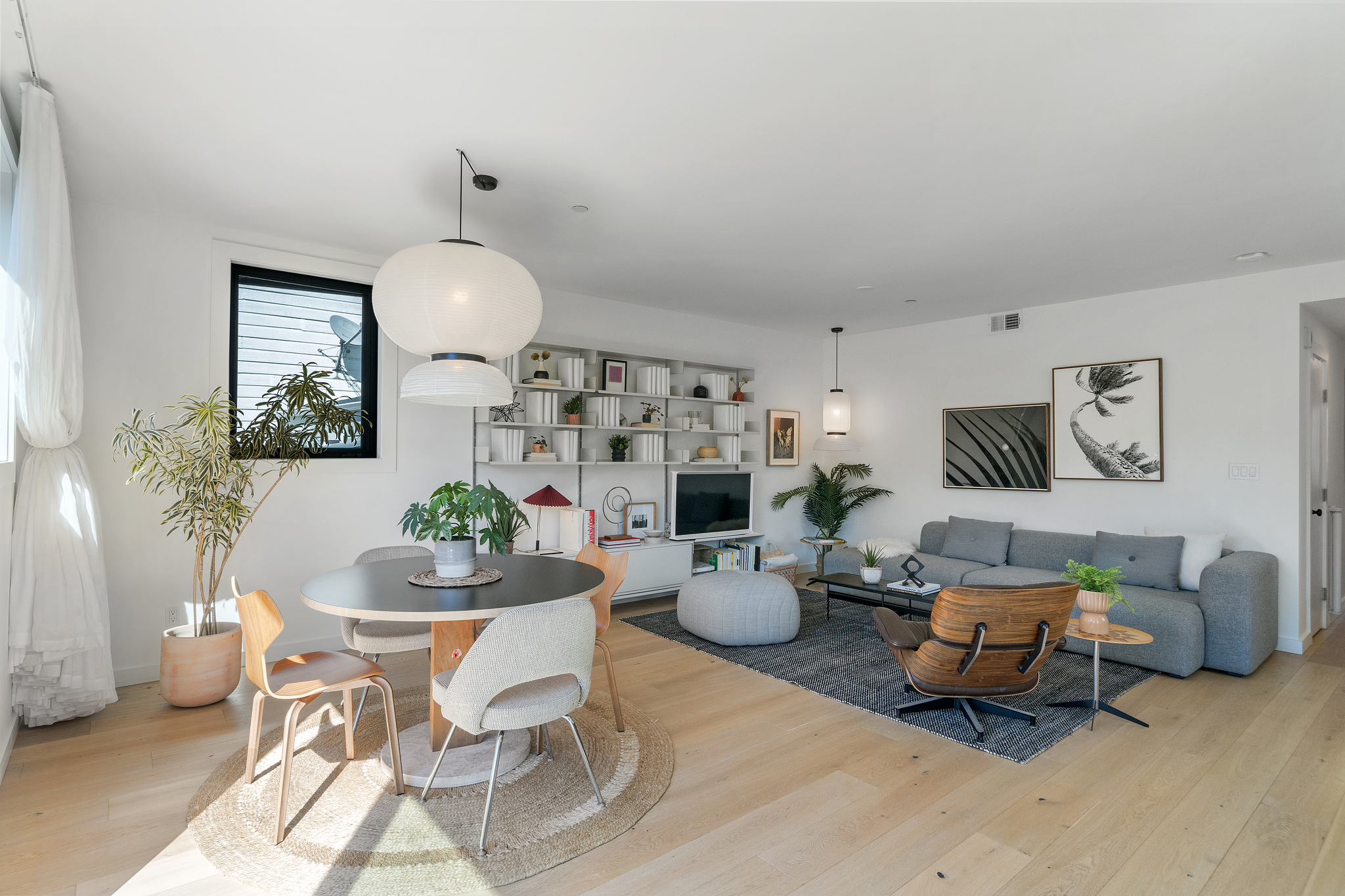 Occupying the entire second level of this renovated contemporary building is this spacious and bright three bedroom, two bathroom home. The heart of this home is the open concept living space. This light, bright great room features a modern kitchen with expansive countertops and luxury level appliances, a dining area and living space, with a large sliding door opening onto a West-facing private deck, perfect for the warm Noe Valley weather. Views of verdant tree tops and expansive sky abound. One ensuite bedroom and two additional bedrooms or offices- all with clean, modern lines and newer windows. Other amenities include in-unit washer and dryer, additional storage, and one car independent garage parking with an ev charger. One block from area shops, restaurants, and public transportation makes this a perfect city home. This TIC represents a 37% ownership in the three unit building.