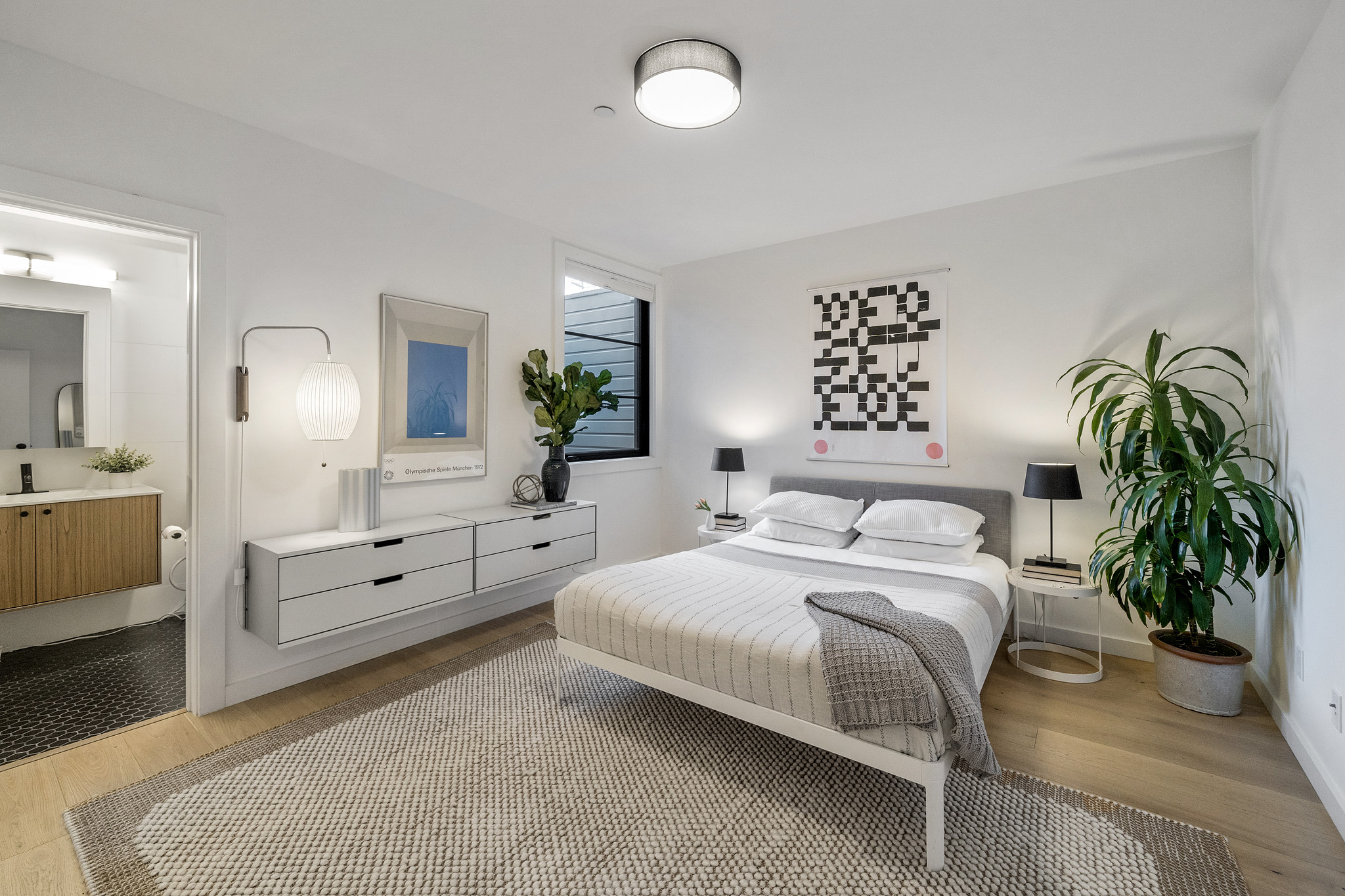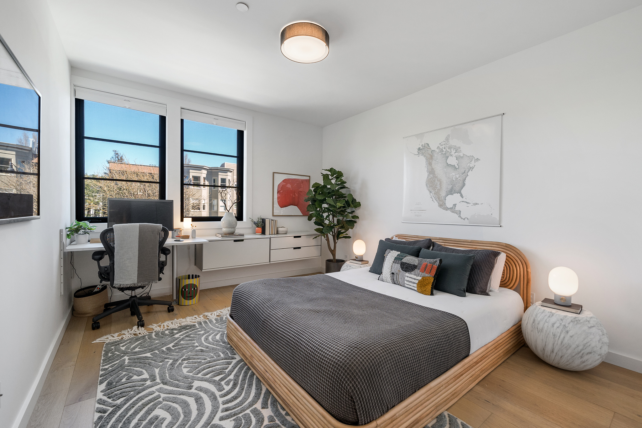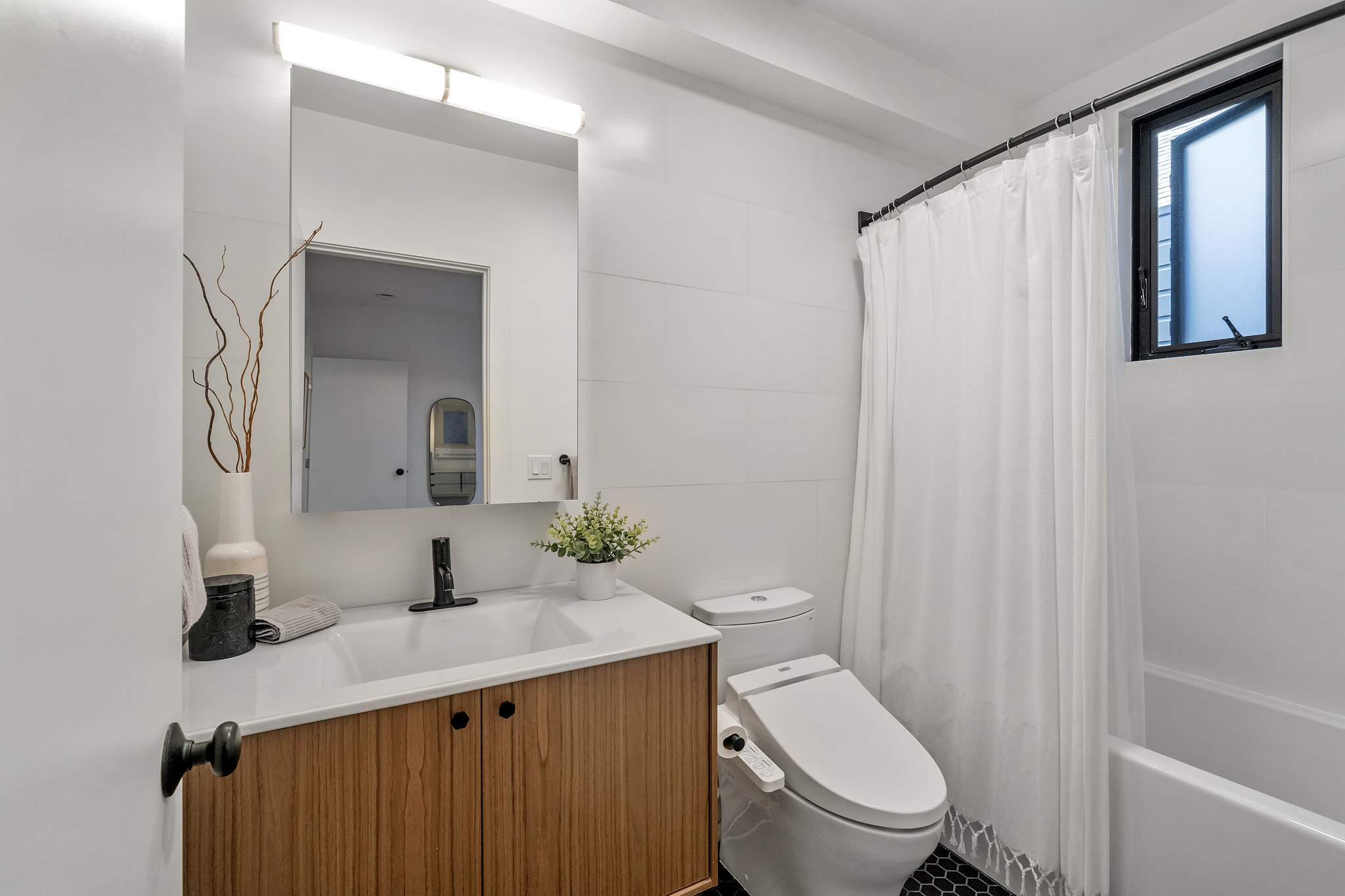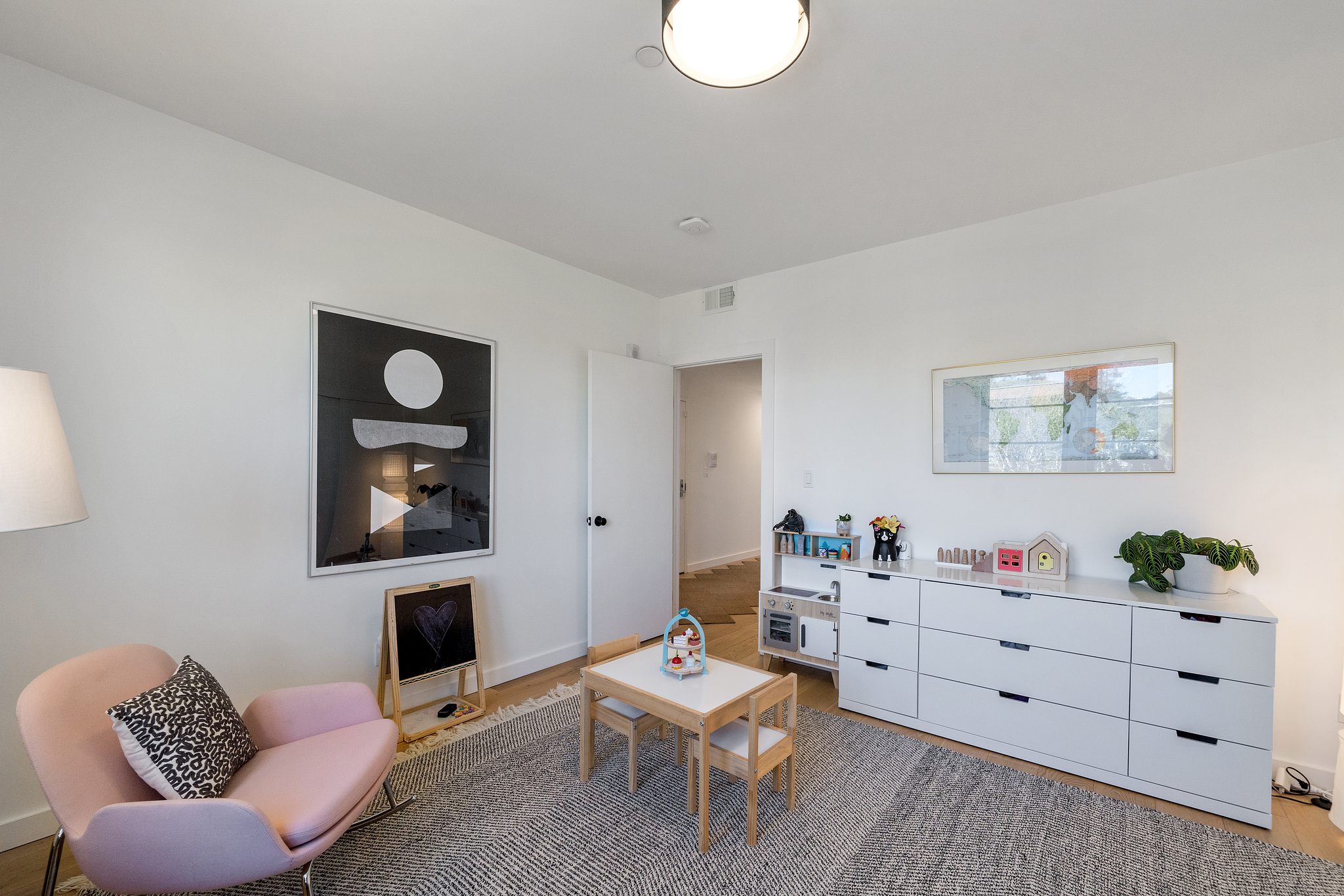 Occupying the entire second level of this renovated contemporary building is this spacious and bright three bedroom, two bathroom home. The heart of this home is the open concept living space. This light, bright great room features a modern kitchen with expansive countertops and luxury level appliances, a dining area and living space, with a large sliding door opening onto a West-facing private deck, perfect for the warm Noe Valley weather. Views of verdant tree tops and expansive sky abound. One ensuite bedroom and two additional bedrooms or offices- all with clean, modern lines and newer windows. Other amenities include in-unit washer and dryer, additional storage, and one car independent garage parking with an ev charger. One block from area shops, restaurants, and public transportation makes this a perfect city home. This TIC represents a 37% ownership in the three unit building.