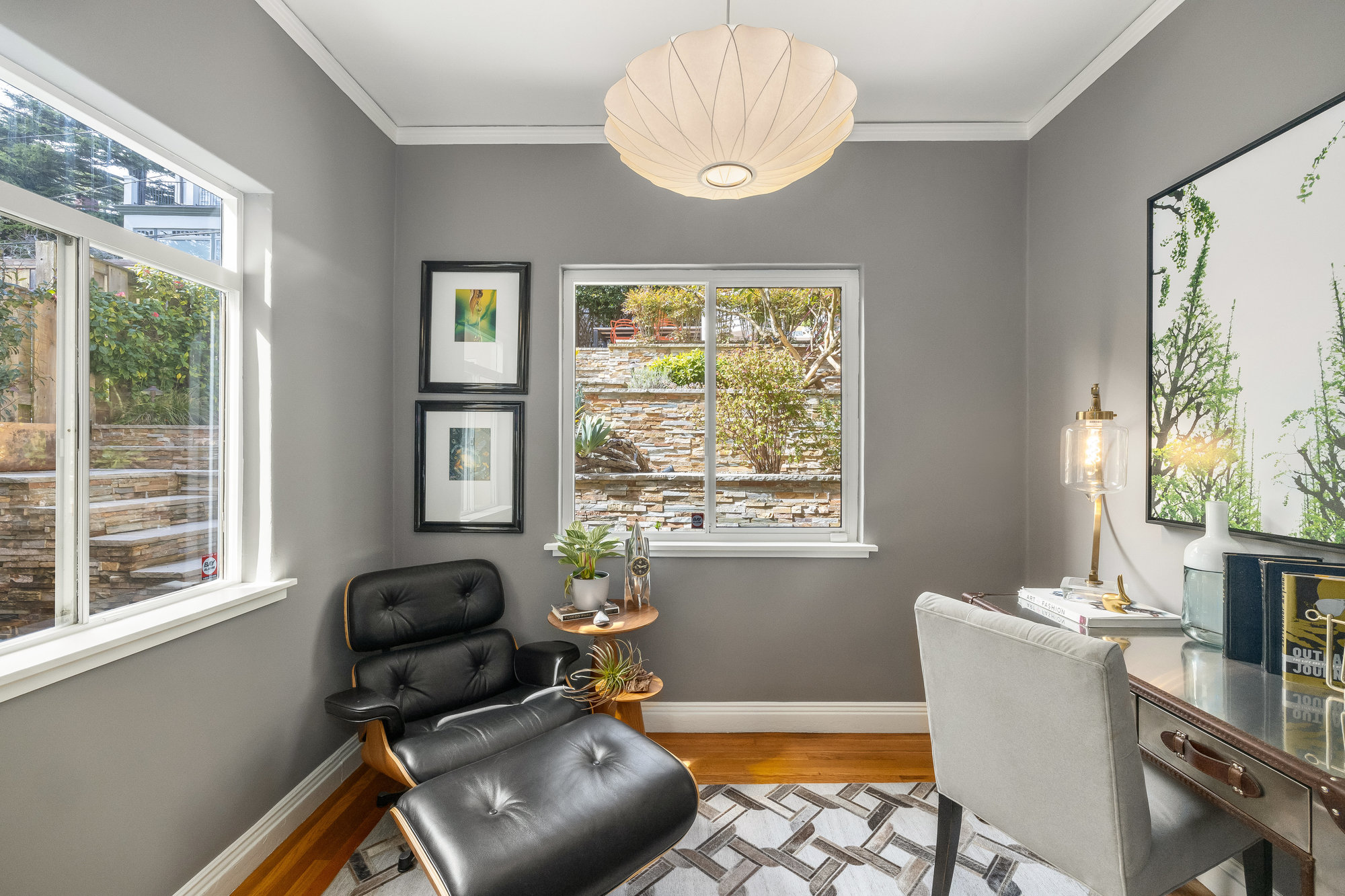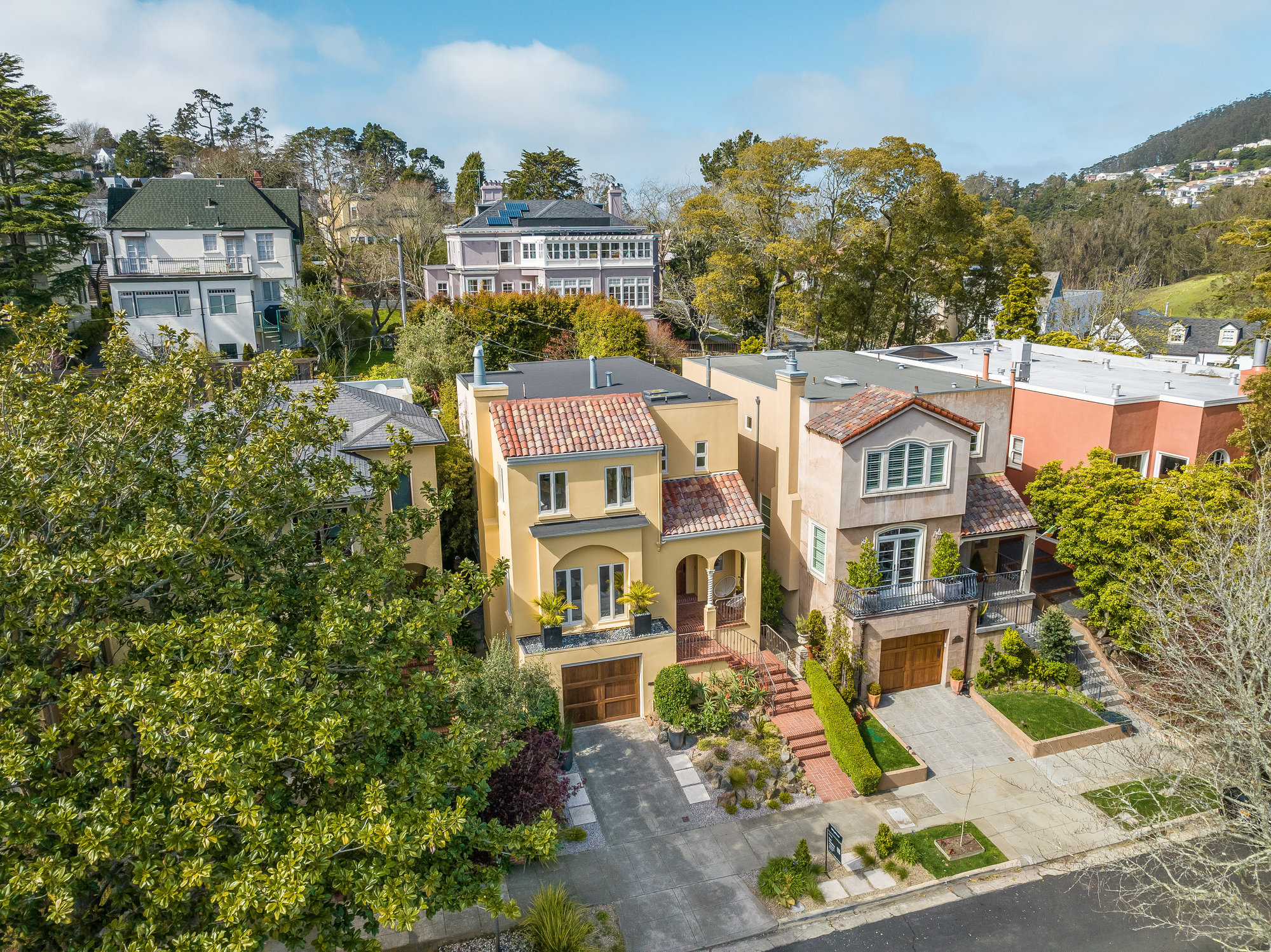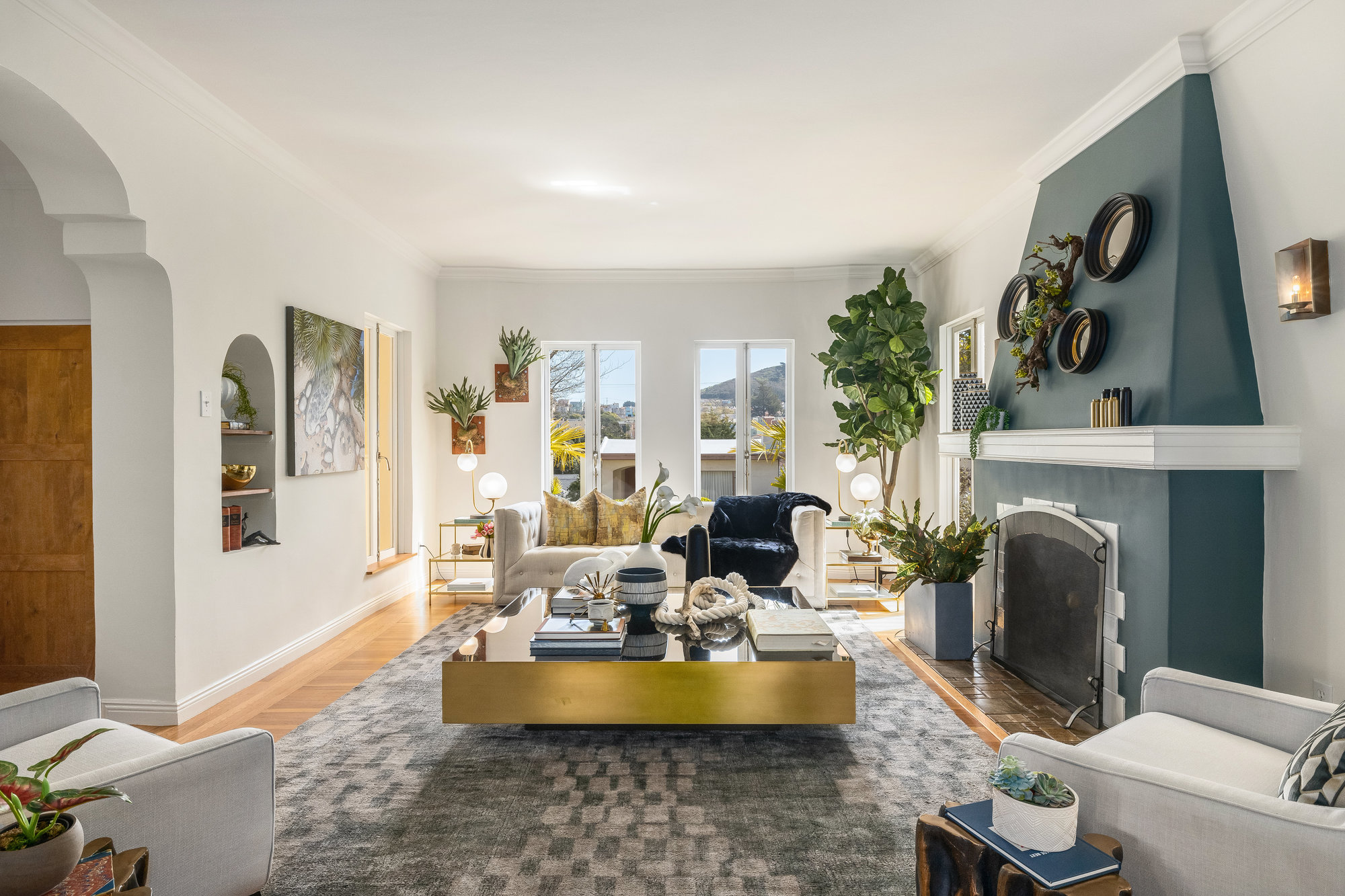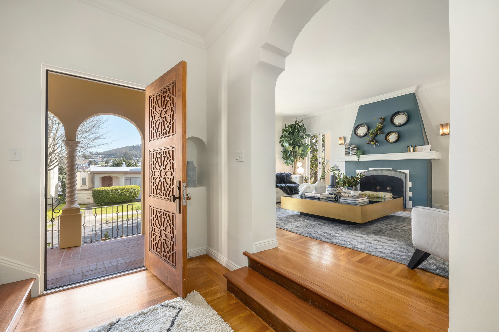 Situated on one of Forest Hill’s premiere tree-lined blocks, this exceptional 1920’s Mediterranean Jewel seamlessly blends contemporary finishes with period detail throughout. The inviting front porch welcomes you in to absorb the comfortable social rooms, sensible floor plan, and serene atmosphere. The grand living room with stately fireplace has large double casement windows with decorative Cremone bolts on three sides, allowing for an abundance of natural light, and flows directly into a spacious formal dining room. The adjacent kitchen includes an O’Keiffe and Merit stove, farmhouse sink, stainless steel appliances and access to the backyard. A separate sitting space/office and a charming half bath complete this level. The upper level features a spacious, light-filled primary bedroom with a beautiful ensuite bath and two additional nice-sized bedrooms with a renovated hall bathroom with a separate shower and tub. The large garage holds 2 cars parked in-tandem, laundry, storage and a wine cellar. The flexible backyard space is perfect for relaxing or entertaining. Blocks to muni and the shops and restaurants of West Portal and Taraval.