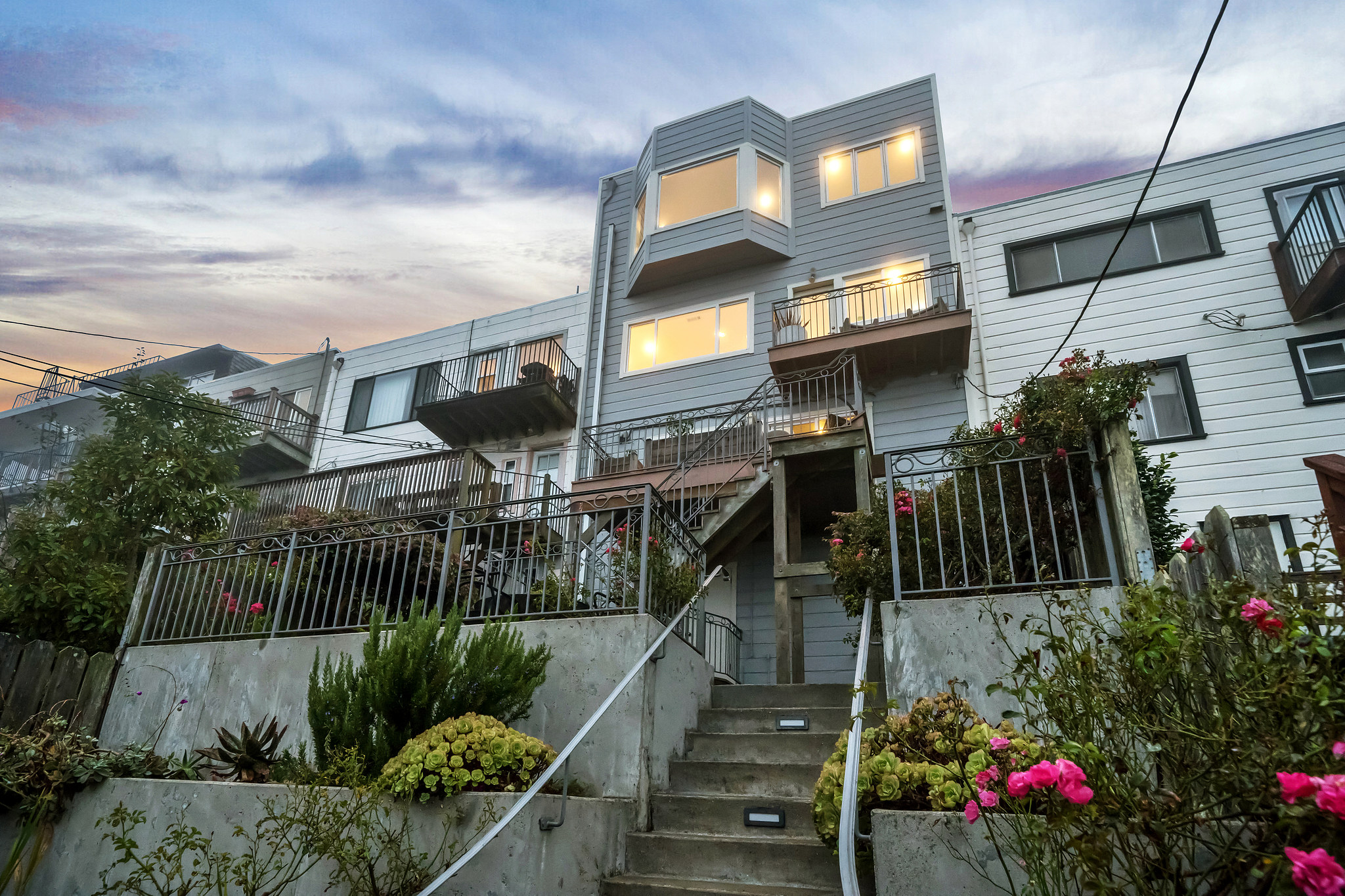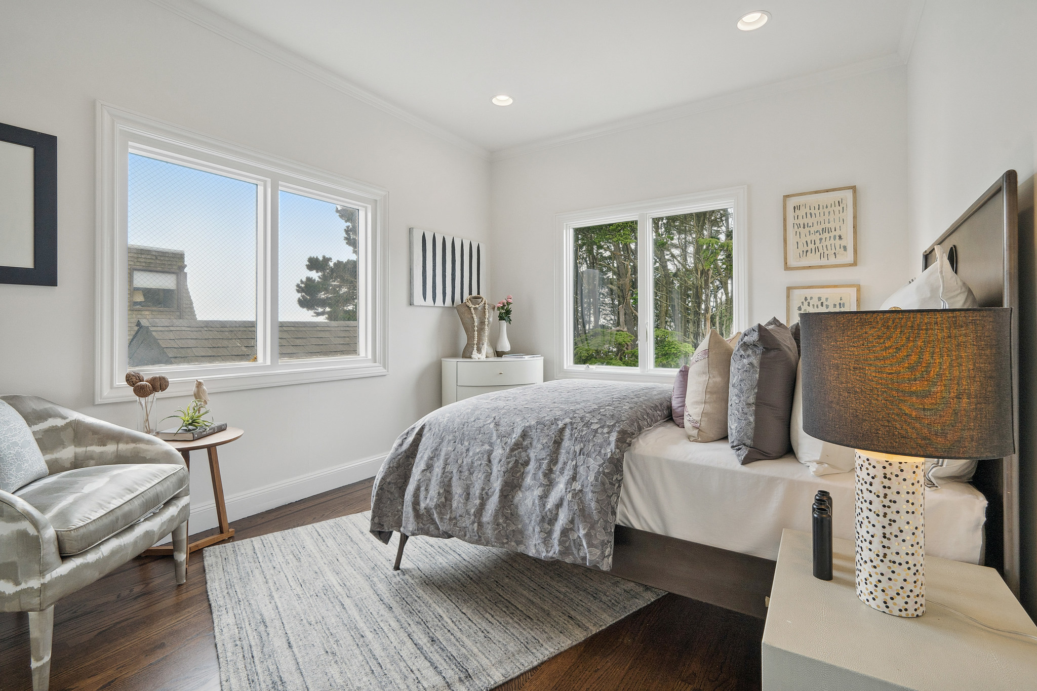 Located on a cul-de-sac & directly across from Golden Gate Heights Park, this one-of-a-kind single-family home offers incredible light, unparalleled views, peaceful outlooks & is park adjacent. The sought-after classic floorplan includes expansive public rooms, 3 bedrooms on one level including a primary suite, additional family room, & multiple outdoor spaces. Upon entering the home, the level entry leads to a spacious media room with sliding door to deck/yard, a generous bedroom, full bathroom, & access to the one car garage, laundry & storage. Up 1 level you will find incredible public rooms including a large living room with fireplace & floor to ceiling windows overlooking the park, a spacious dining room, large kitchen with island, separate sitting area & deck with views from Bay to Sutro Tower. Upper level consists of a large primary ensuite bedroom with WIC with views, 2 bedrooms, full bath. Terraced yard is perfect for entertaining, energetic kids, dogs or green thumb. Easy access to Inner Sunset, West Portal, and Forest Hill Muni.