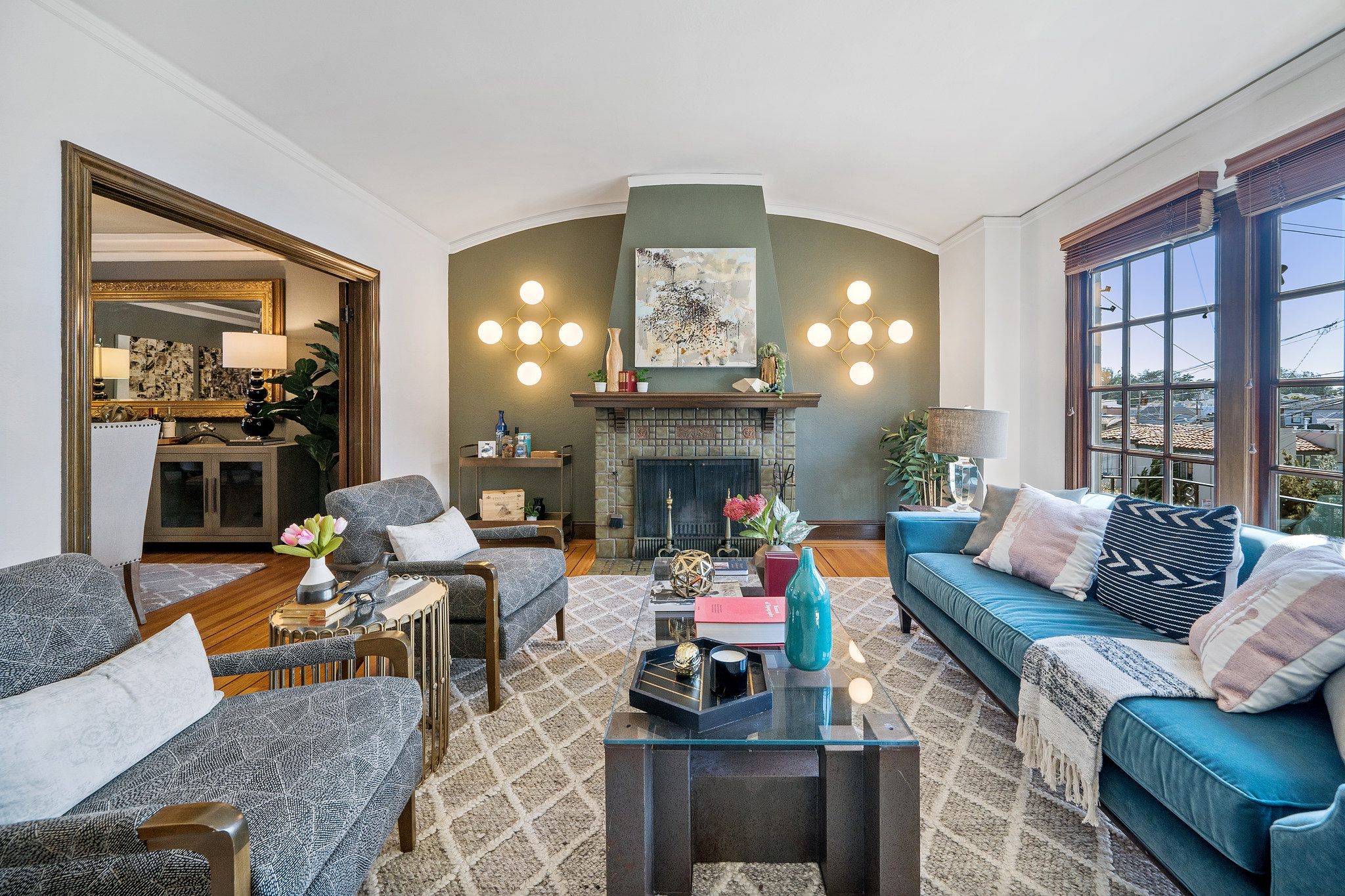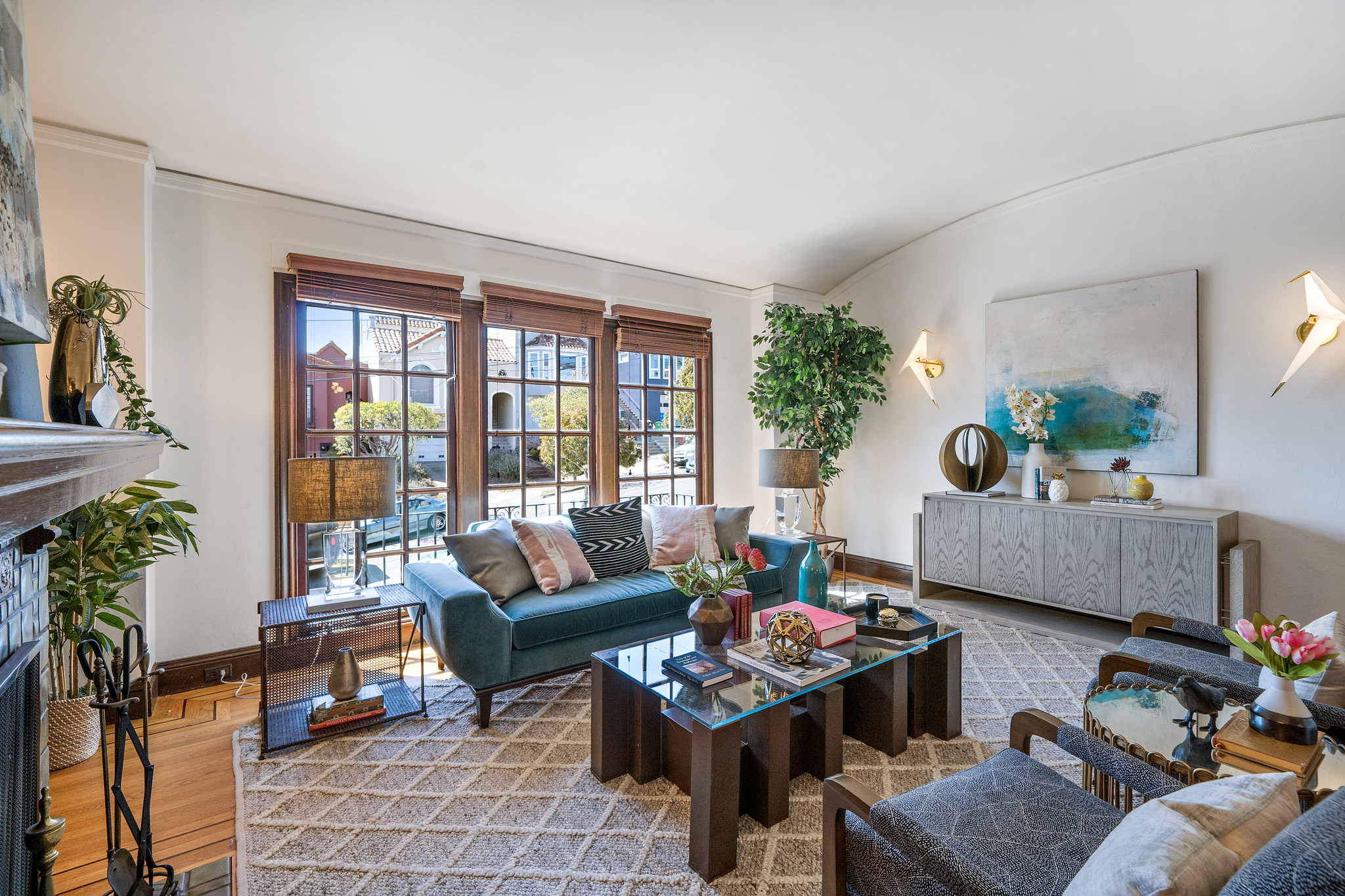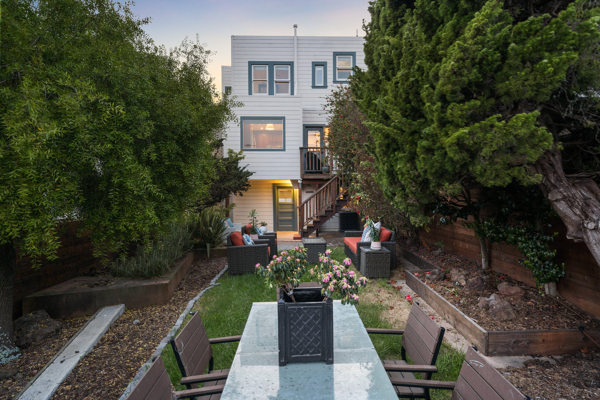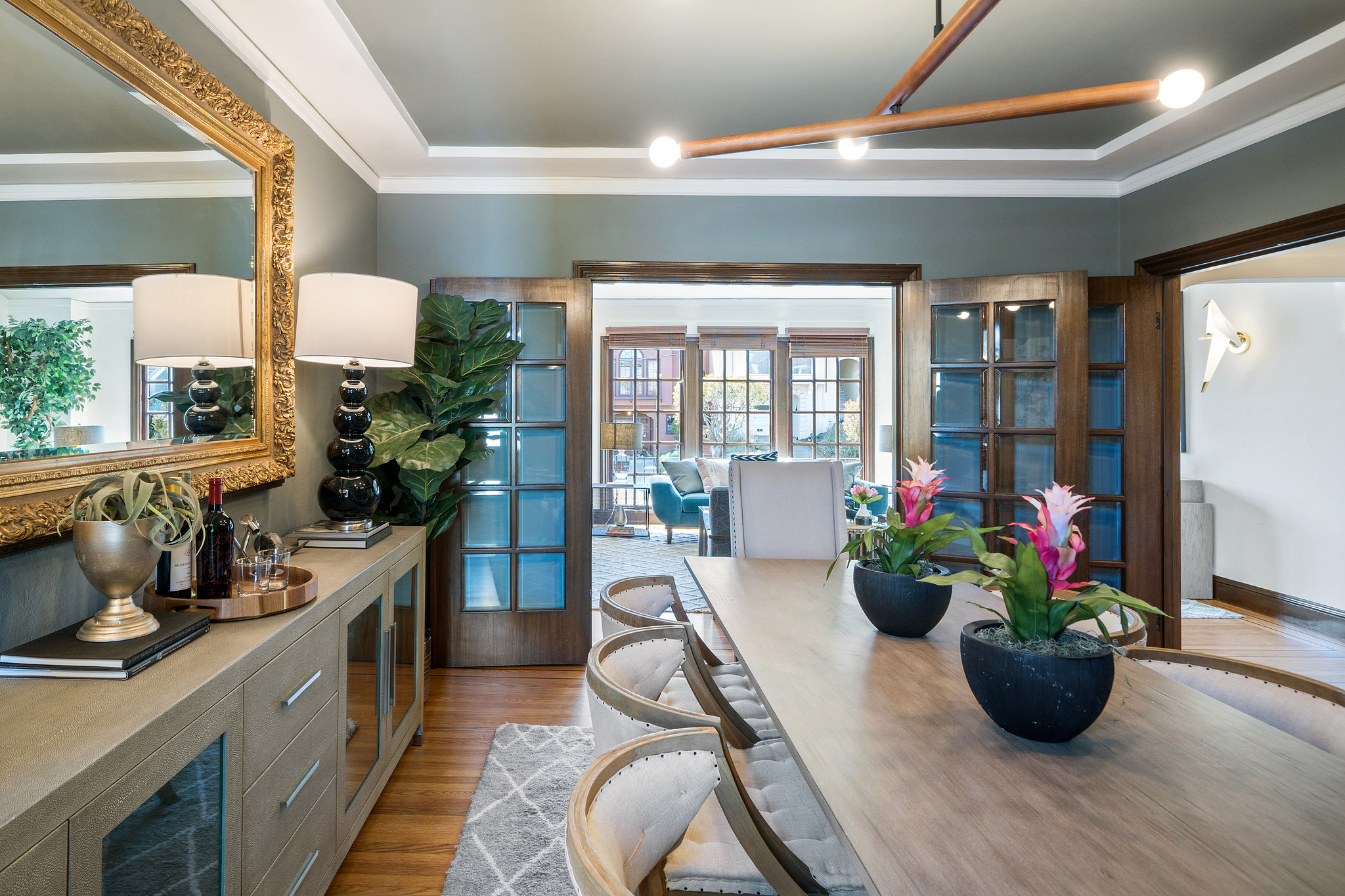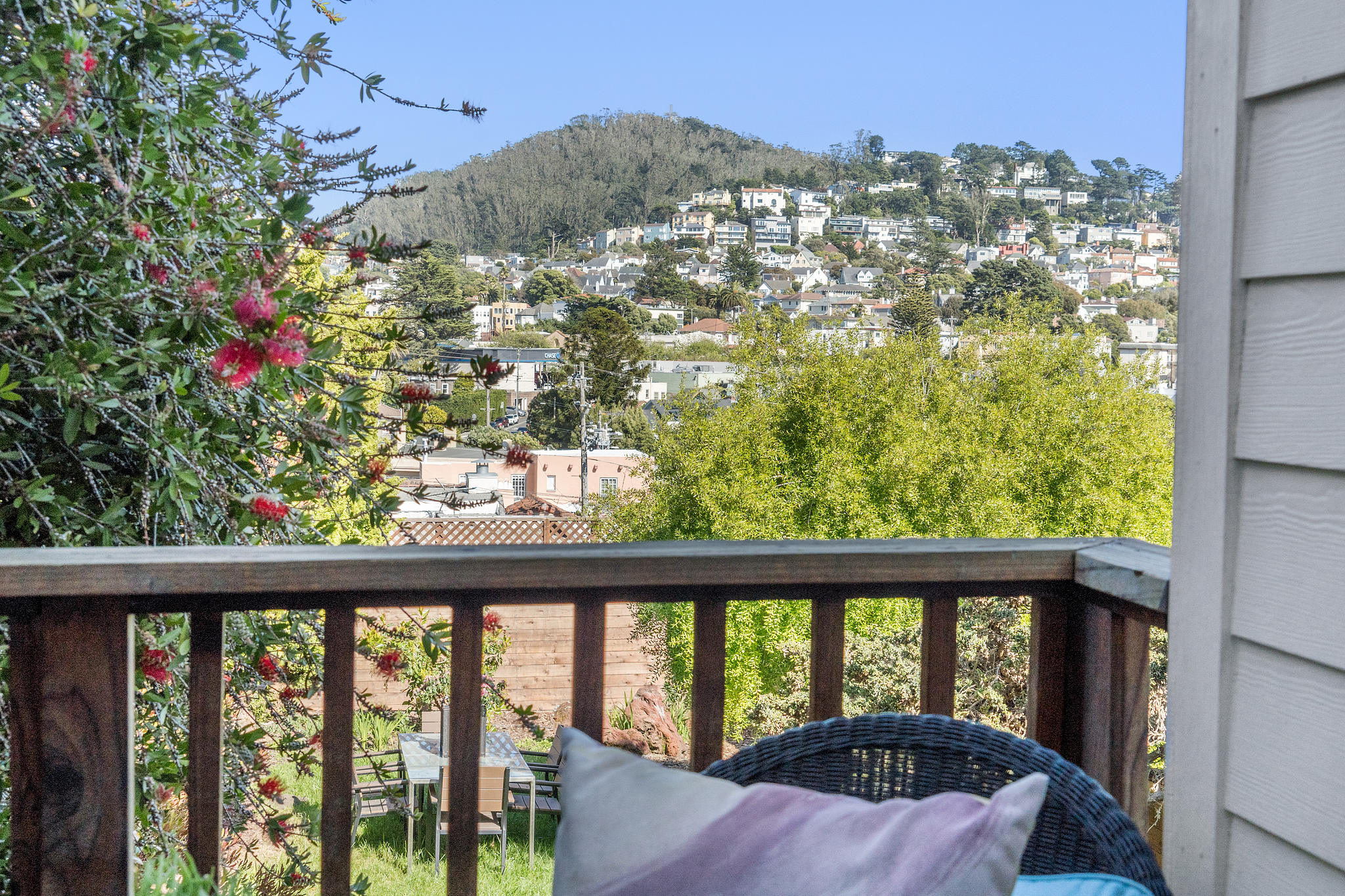 Charming original details and an abundance of natural light fill this home with a warmth that makes you want to stay awhile. The west-facing spacious living room with fireplace and big picture windows is connected via glass French doors to the formal dining room- a wonderful entertaining space. The remodeled kitchen features an island, stainless steel appliances, casual dining area and spot for relaxing, all with direct access to deck and flat yard. Upstairs are two generous bedrooms and a full bathroom. Interior access to the attached garage with parking, storage, laundry, and bonus space. Other features include air conditioning, wood floors, contemporary lighting, newer windows. Blocks to the shops and restaurants of West Portal and muni.