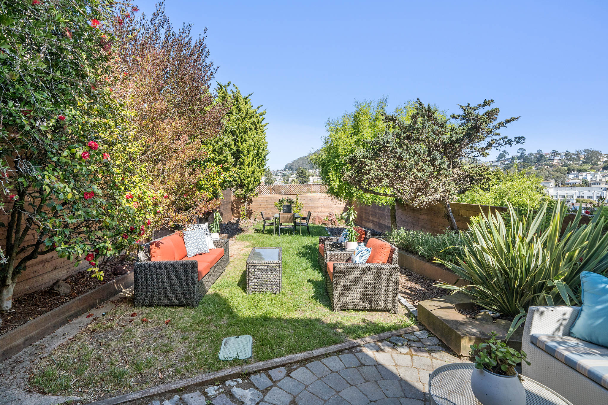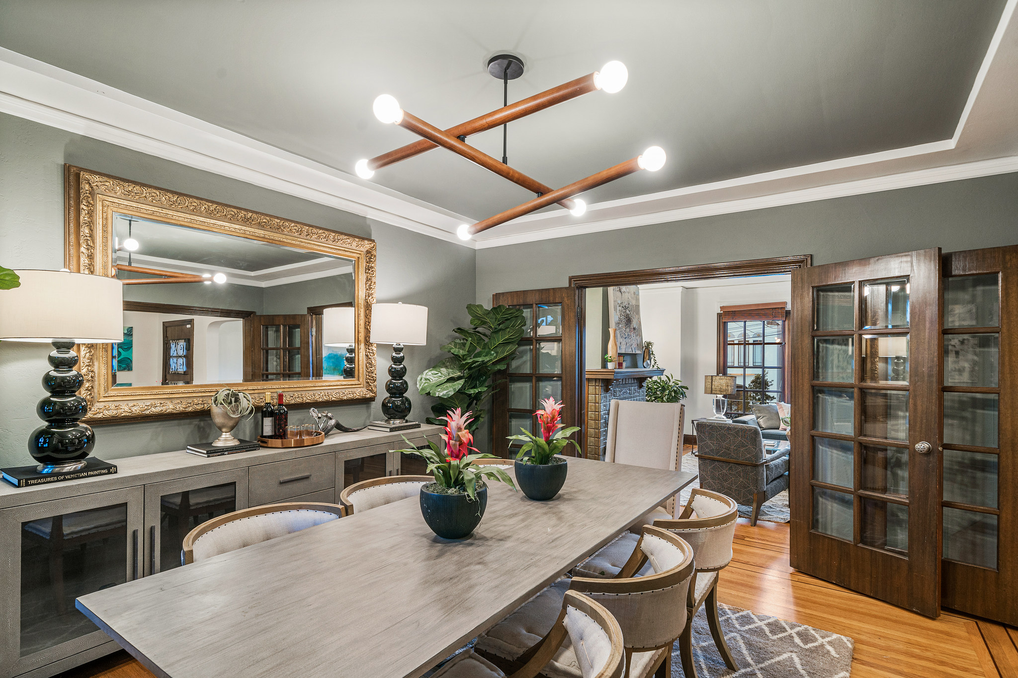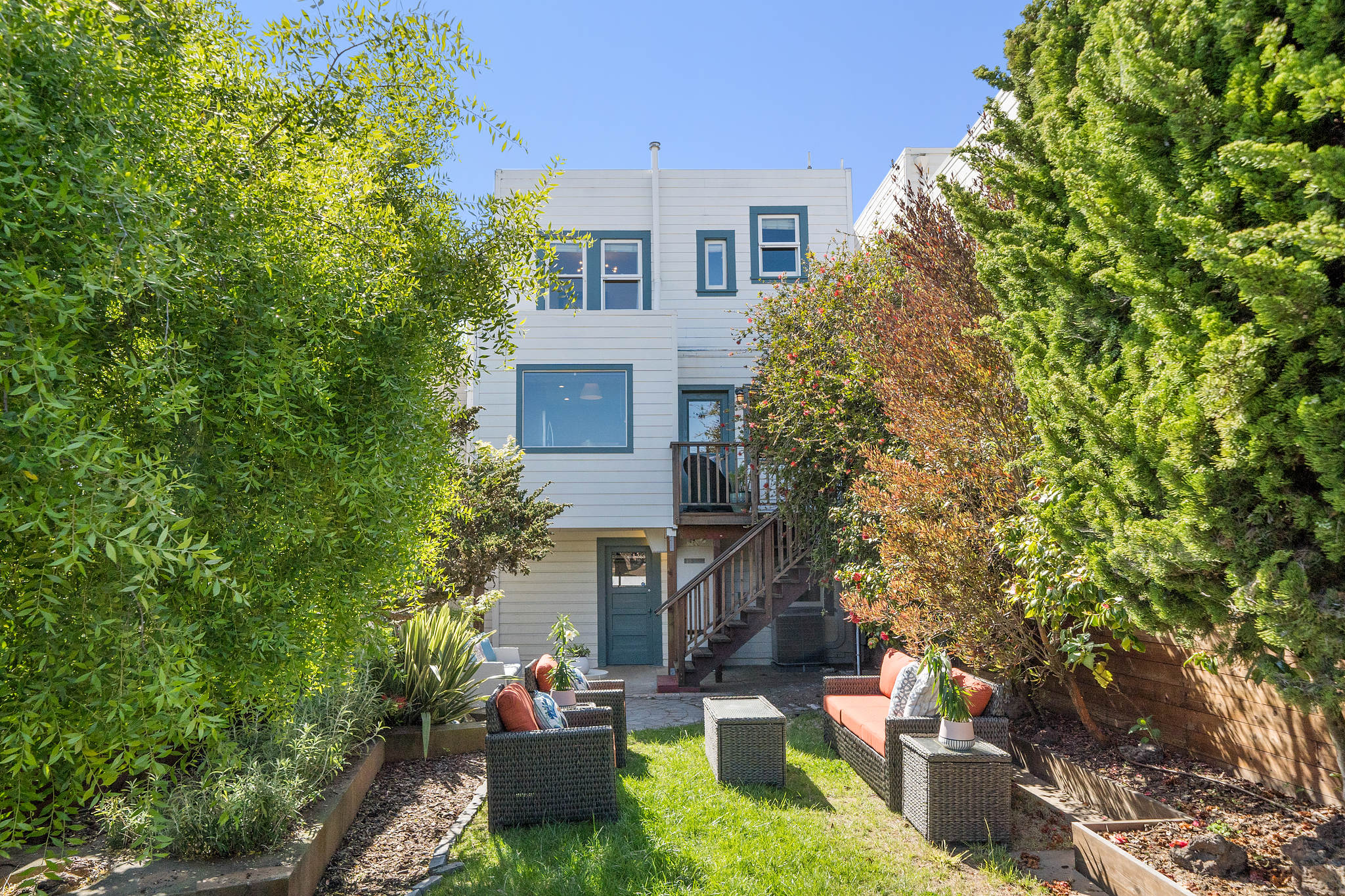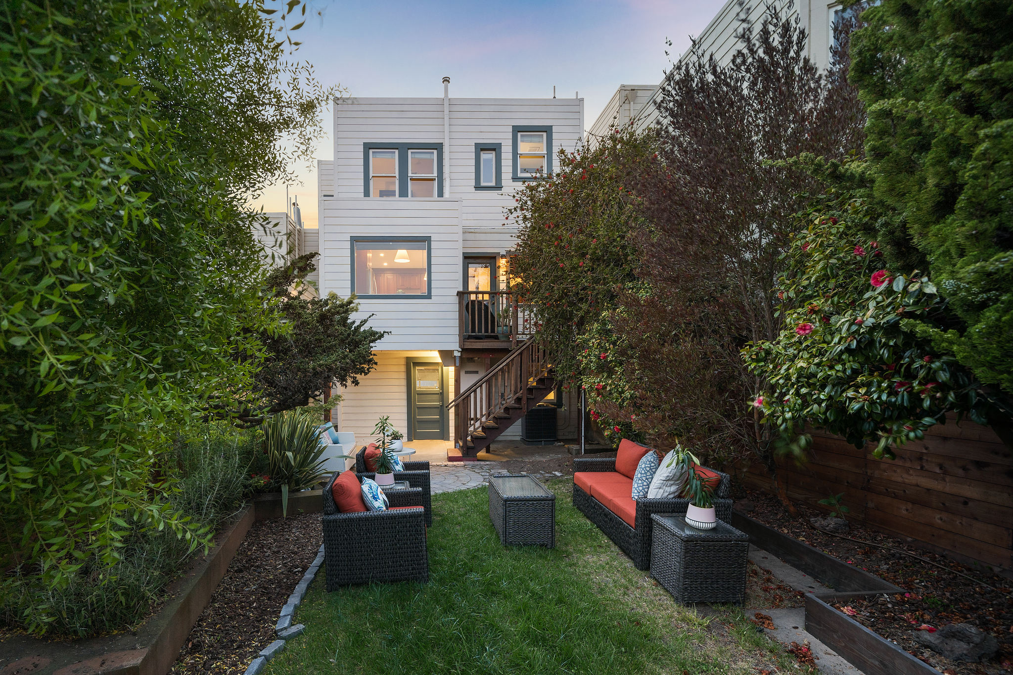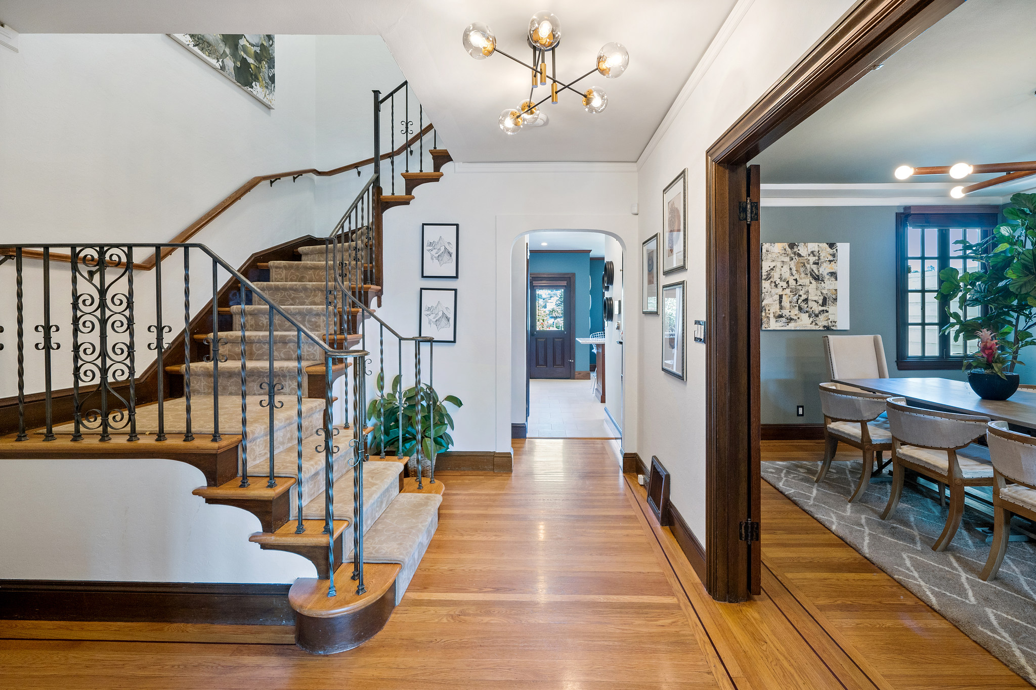 Charming original details and an abundance of natural light fill this home with a warmth that makes you want to stay awhile. The west-facing spacious living room with fireplace and big picture windows is connected via glass French doors to the formal dining room- a wonderful entertaining space. The remodeled kitchen features an island, stainless steel appliances, casual dining area and spot for relaxing, all with direct access to deck and flat yard. Upstairs are two generous bedrooms and a full bathroom. Interior access to the attached garage with parking, storage, laundry, and bonus space. Other features include air conditioning, wood floors, contemporary lighting, newer windows. Blocks to the shops and restaurants of West Portal and muni.