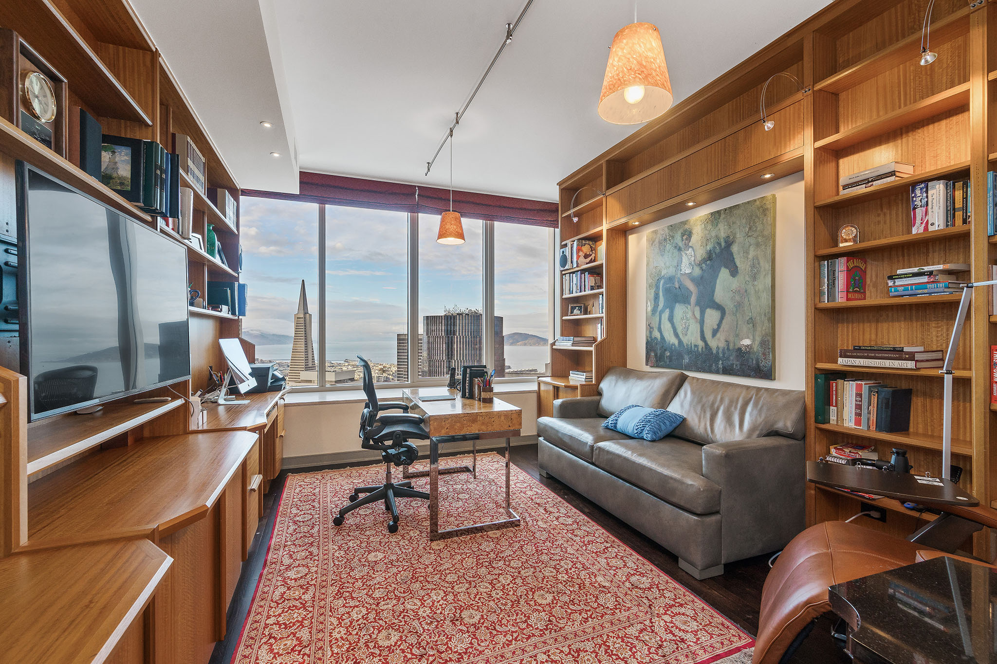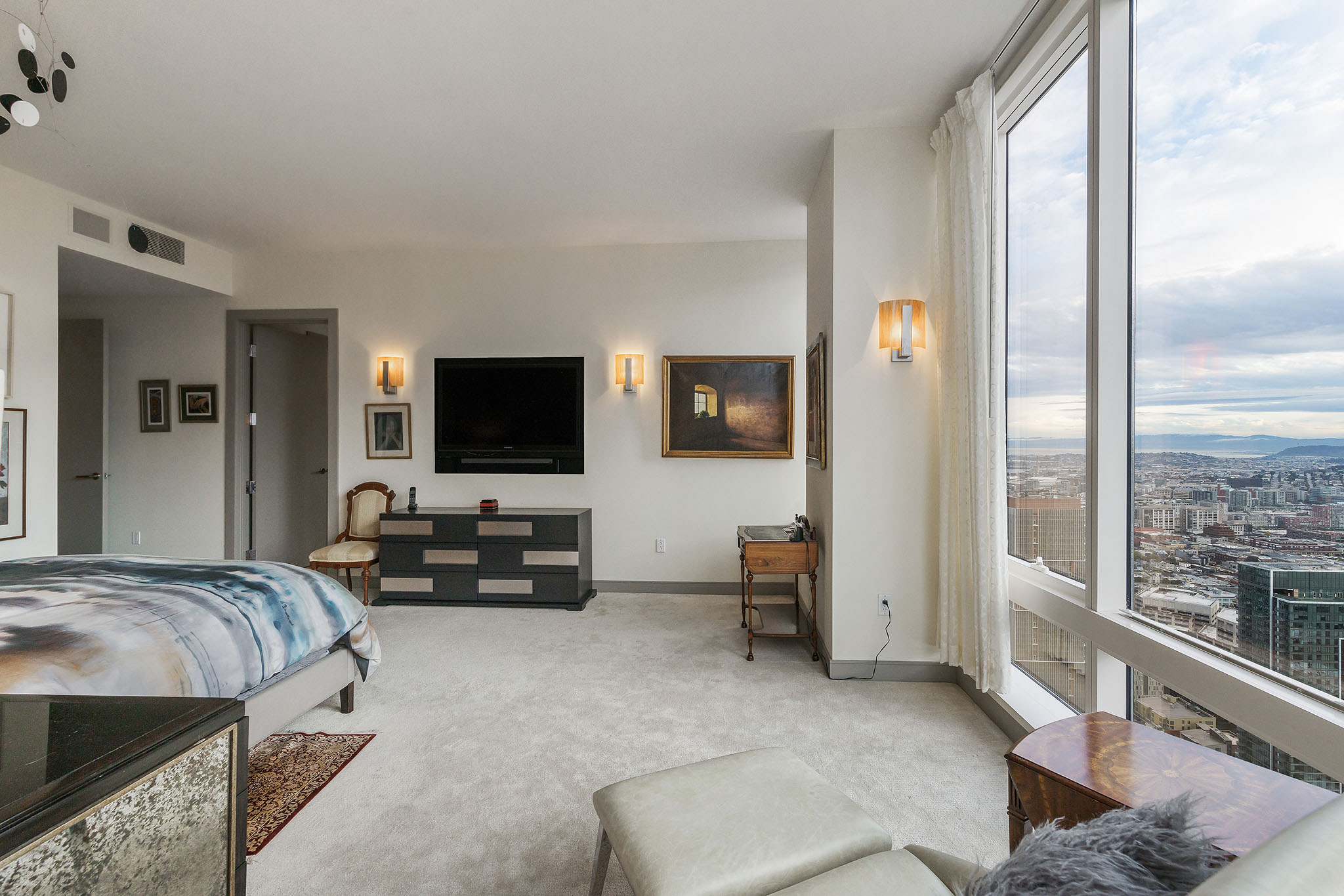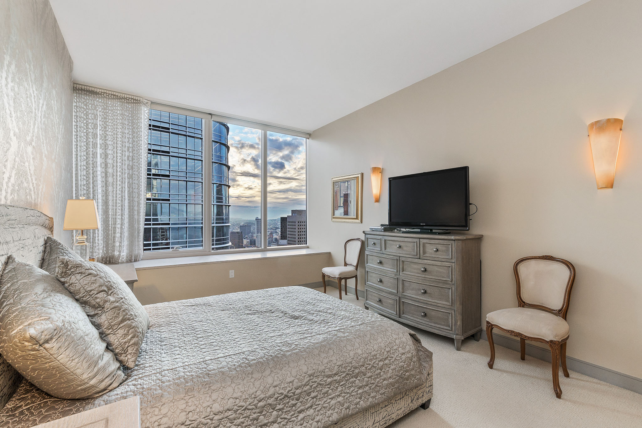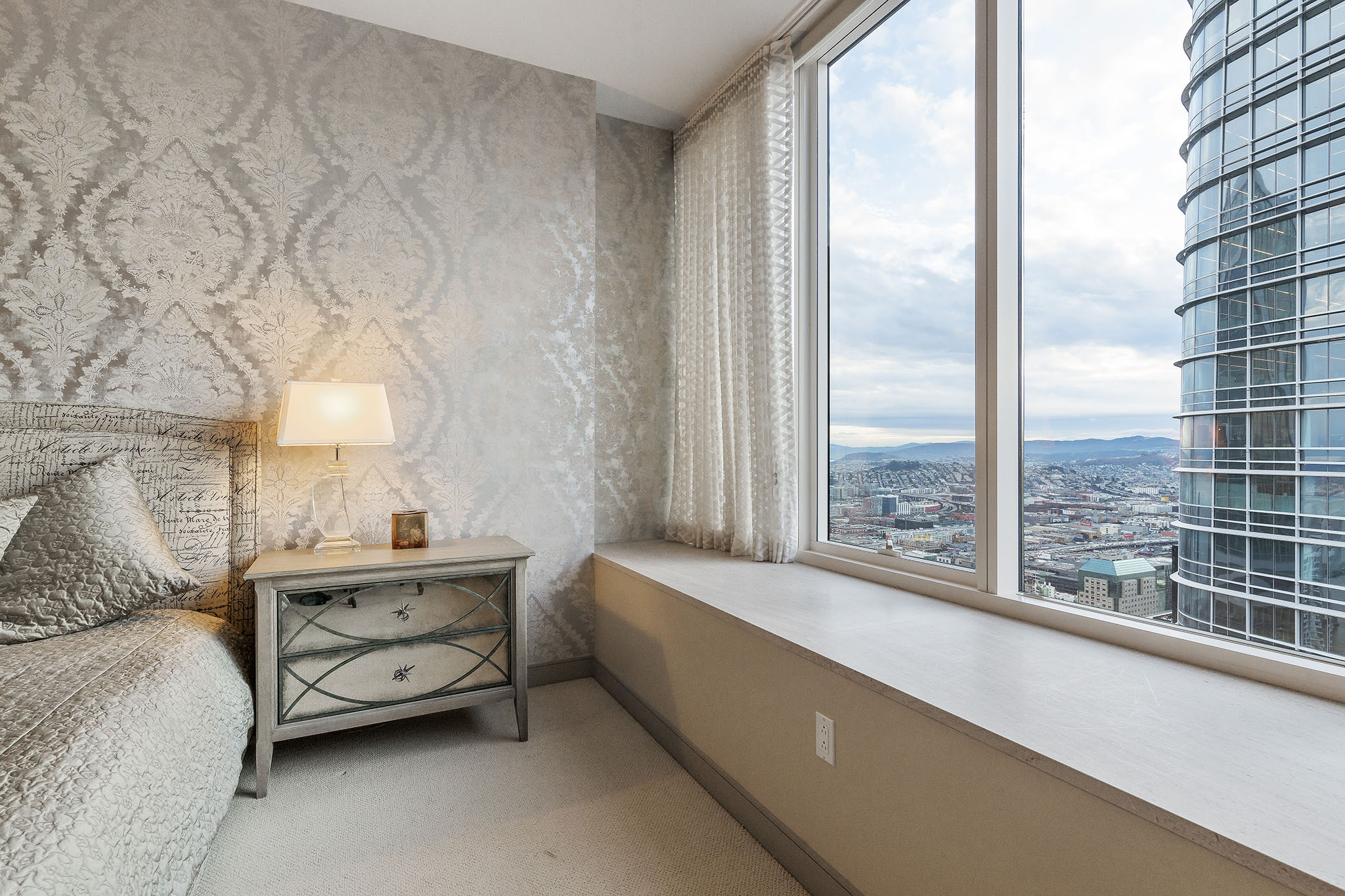 Unique opportunity to purchase one of the largest condos in Millennium Tower’s Grand Residences offering epic views of the bay, Transamerica Pyramid, Golden Gate Bridge, Sutro Tower, and southern rolling hills. Situated one floor below the penthouse level and one of only four residences per floor, the layout includes two sizable ensuite bedrooms, a separate versatile office or third bedroom and a third full bathroom. Large windows and an abundance of natural light and interesting views from every room. Extensive storage throughout including built-in cabinetry and organized closets. A separate laundry room, custom lighting, remote control window shades, Sonos speakers, two car parking and wine locker help make this condo urban living at its finest!