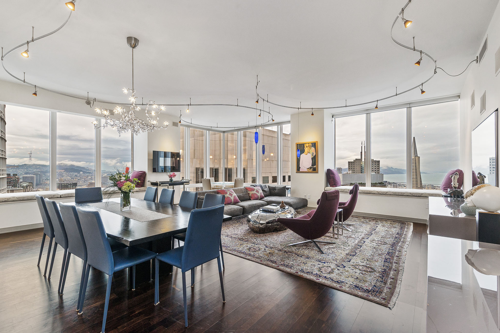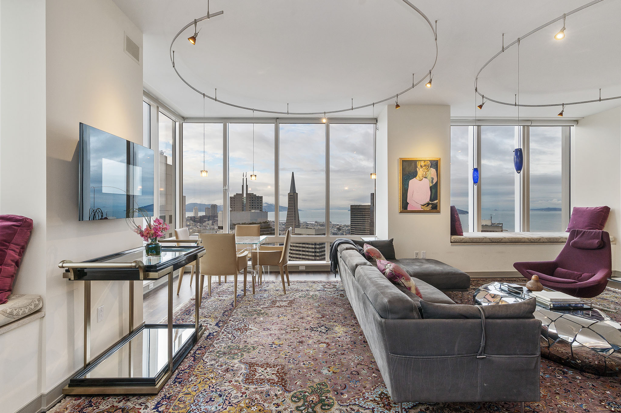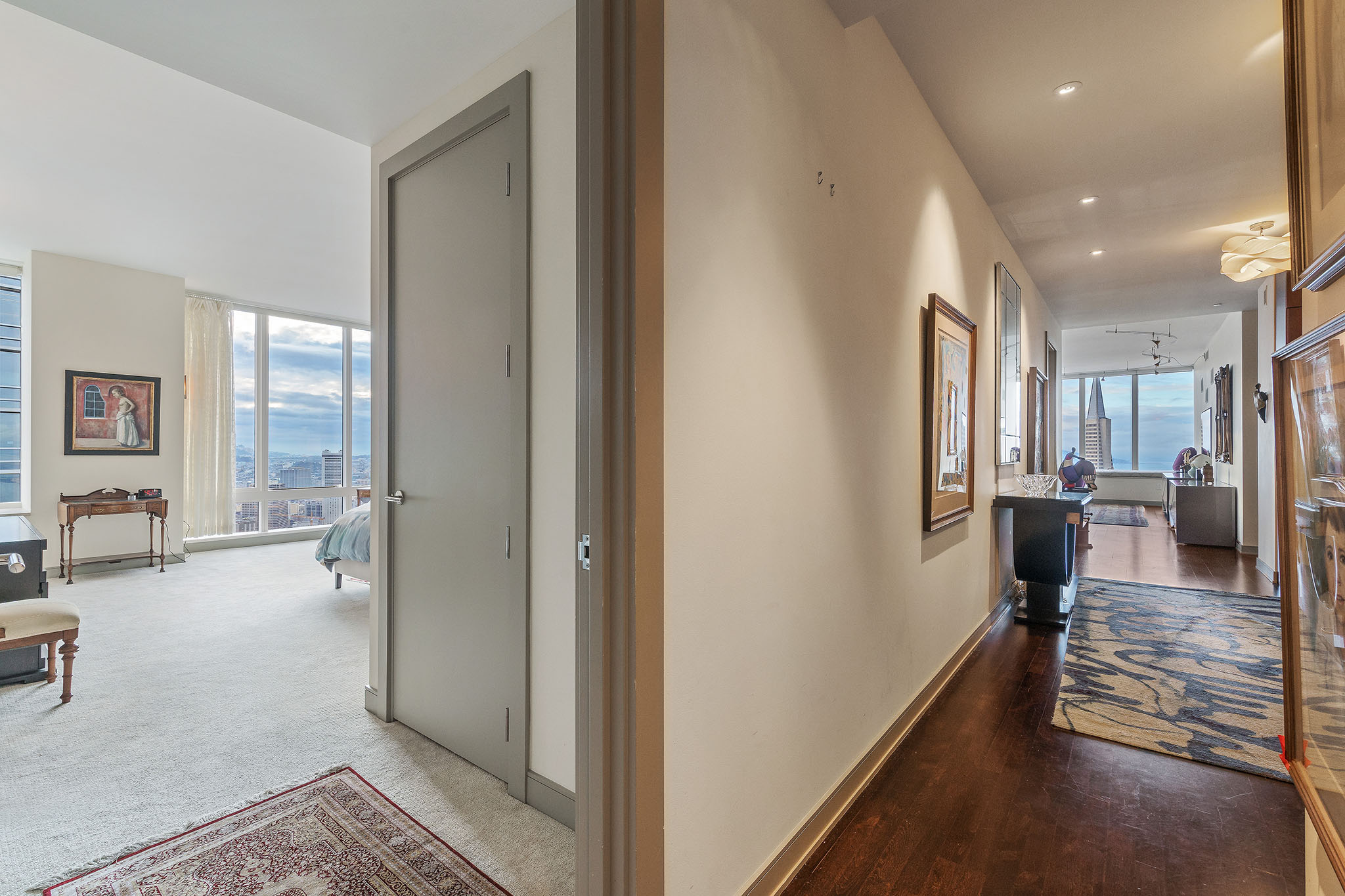 Unique opportunity to purchase one of the largest condos in Millennium Tower’s Grand Residences offering epic views of the bay, Transamerica Pyramid, Golden Gate Bridge, Sutro Tower, and southern rolling hills. Situated one floor below the penthouse level and one of only four residences per floor, the layout includes two sizable ensuite bedrooms, a separate versatile office or third bedroom and a third full bathroom. Large windows and an abundance of natural light and interesting views from every room. Extensive storage throughout including built-in cabinetry and organized closets. A separate laundry room, custom lighting, remote control window shades, Sonos speakers, two car parking and wine locker help make this condo urban living at its finest!