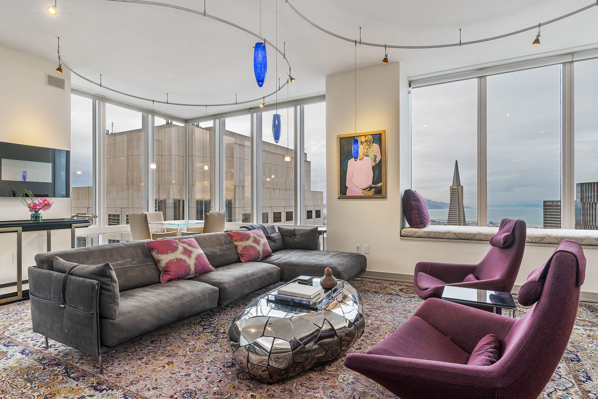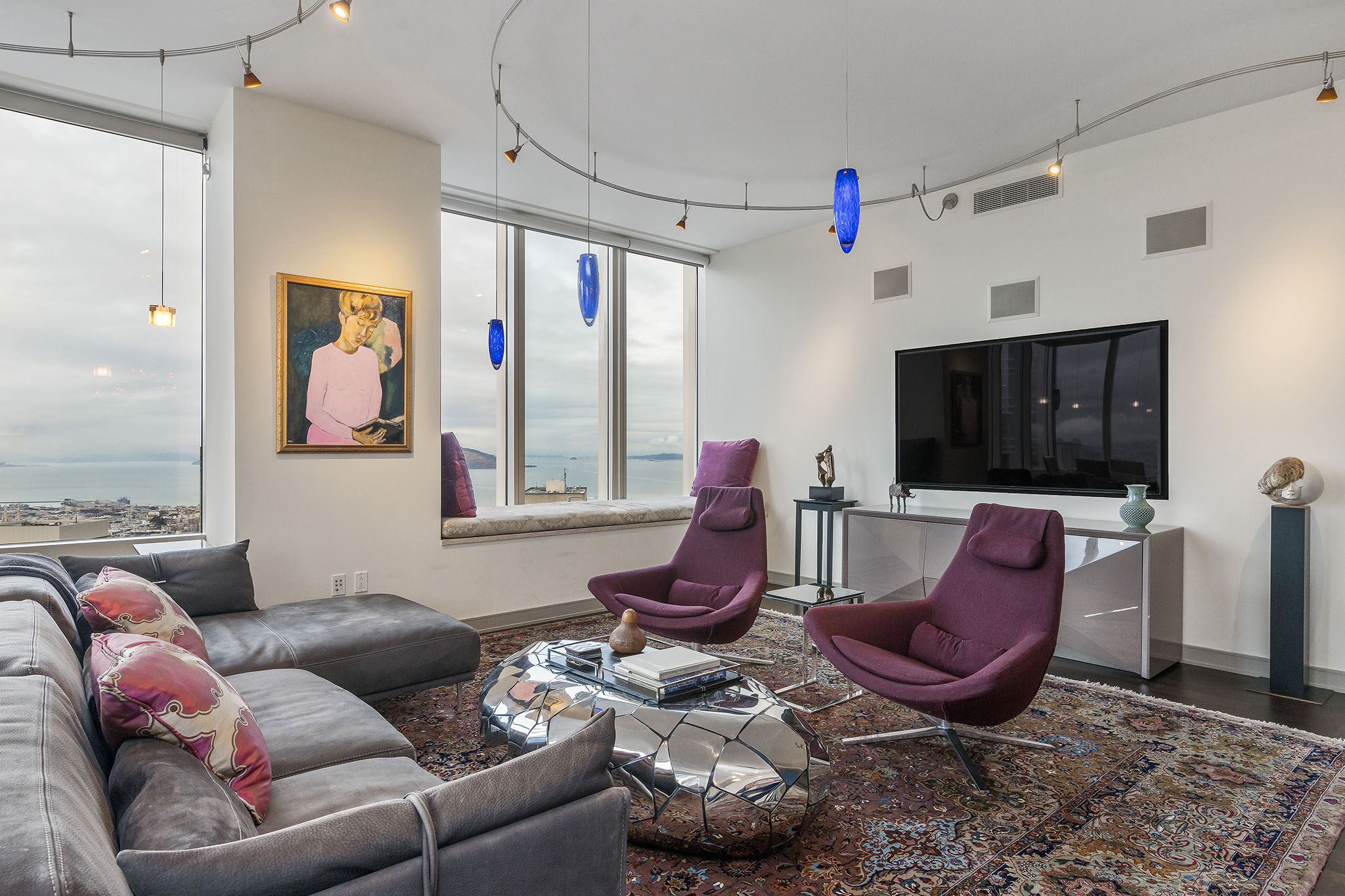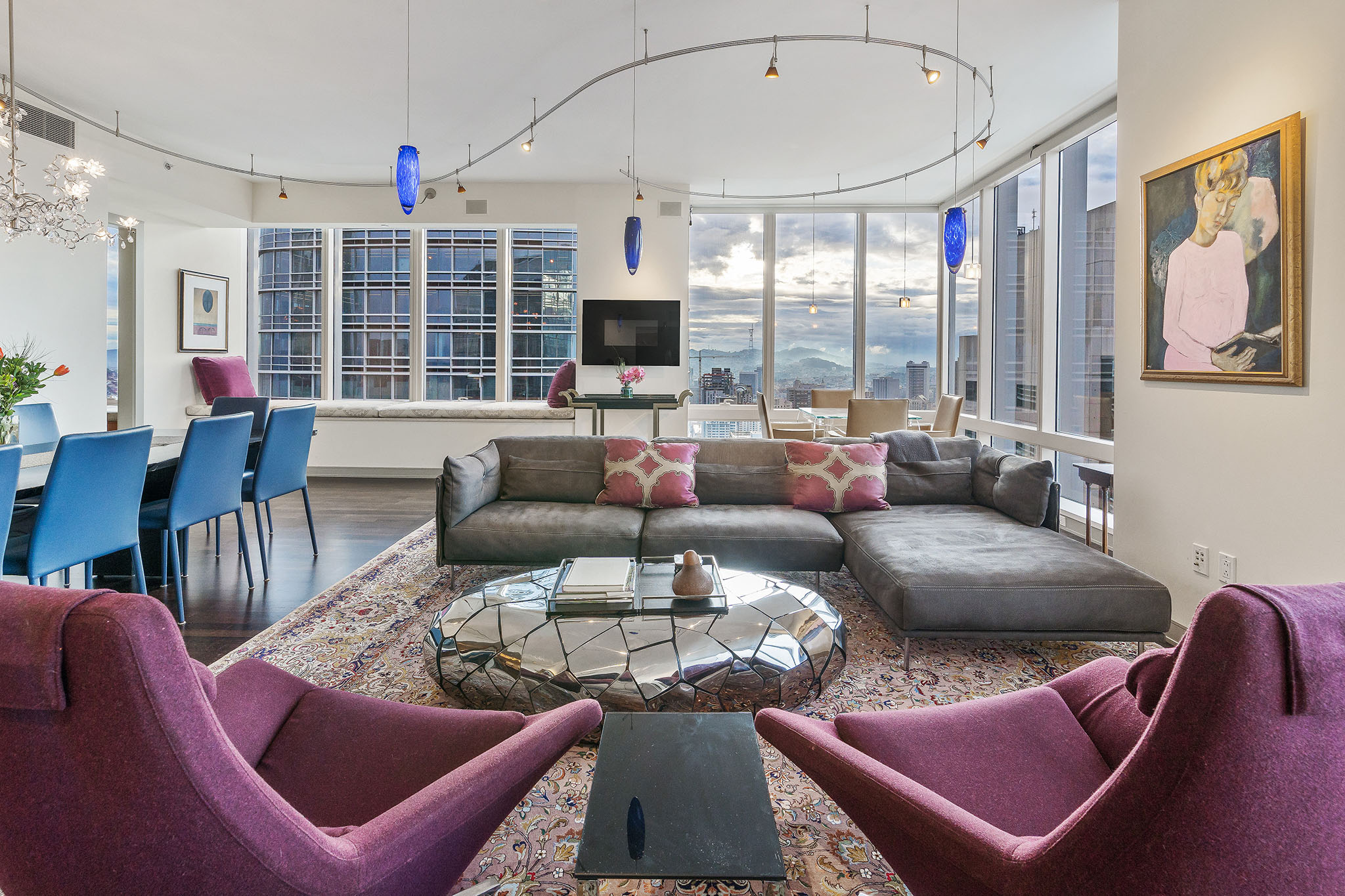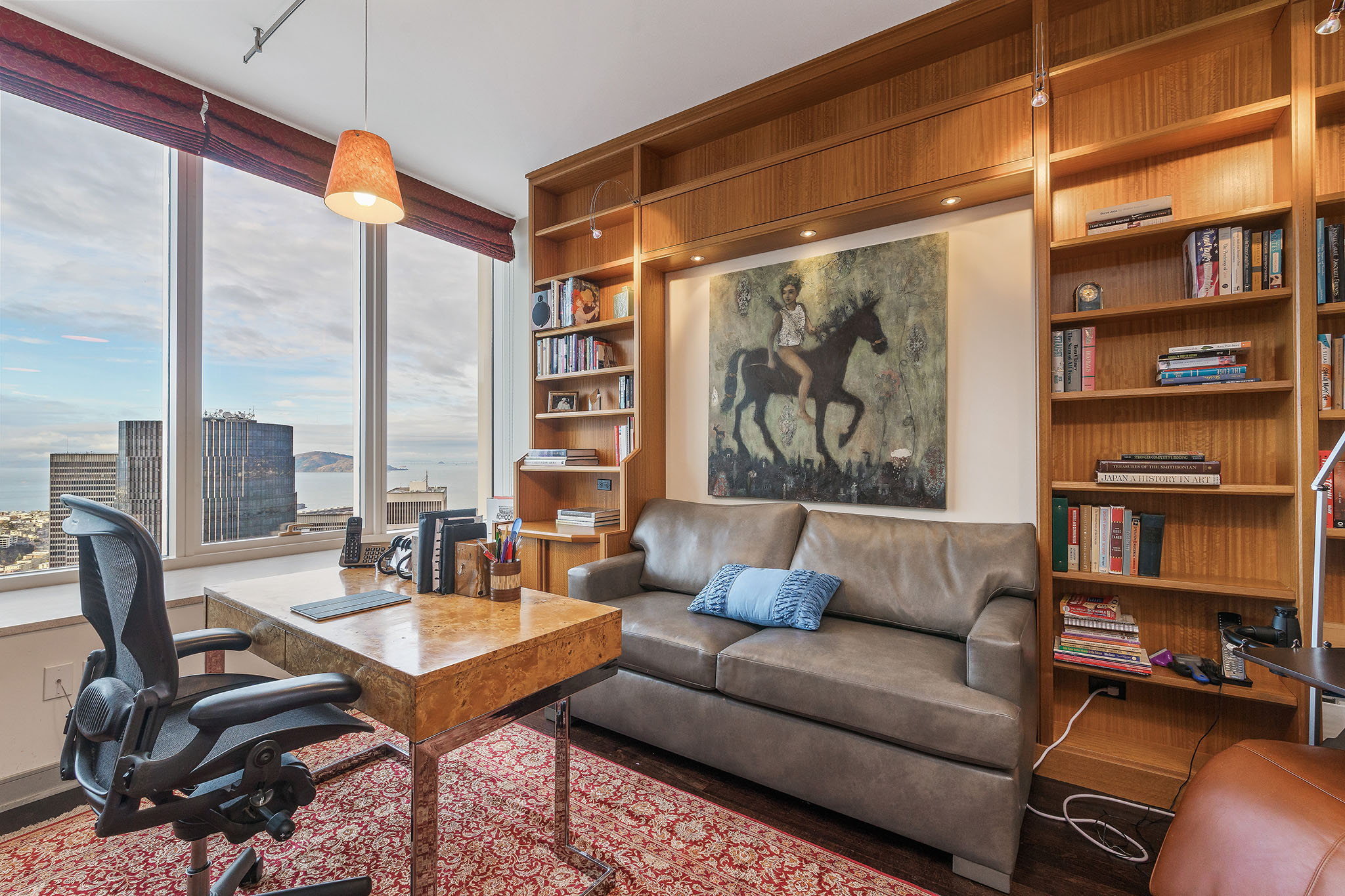 Unique opportunity to purchase one of the largest condos in Millennium Tower’s Grand Residences offering epic views of the bay, Transamerica Pyramid, Golden Gate Bridge, Sutro Tower, and southern rolling hills. Situated one floor below the penthouse level and one of only four residences per floor, the layout includes two sizable ensuite bedrooms, a separate versatile office or third bedroom and a third full bathroom. Large windows and an abundance of natural light and interesting views from every room. Extensive storage throughout including built-in cabinetry and organized closets. A separate laundry room, custom lighting, remote control window shades, Sonos speakers, two car parking and wine locker help make this condo urban living at its finest!