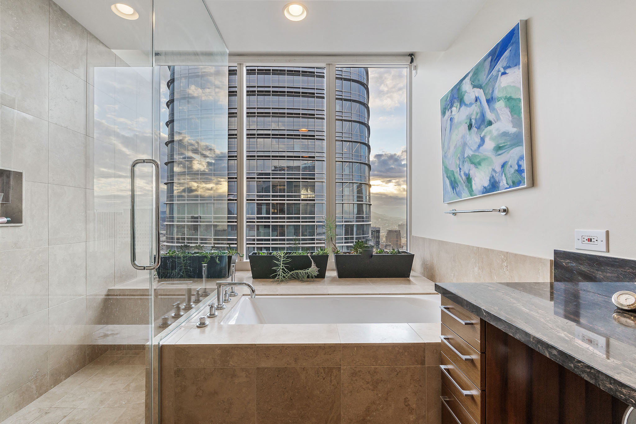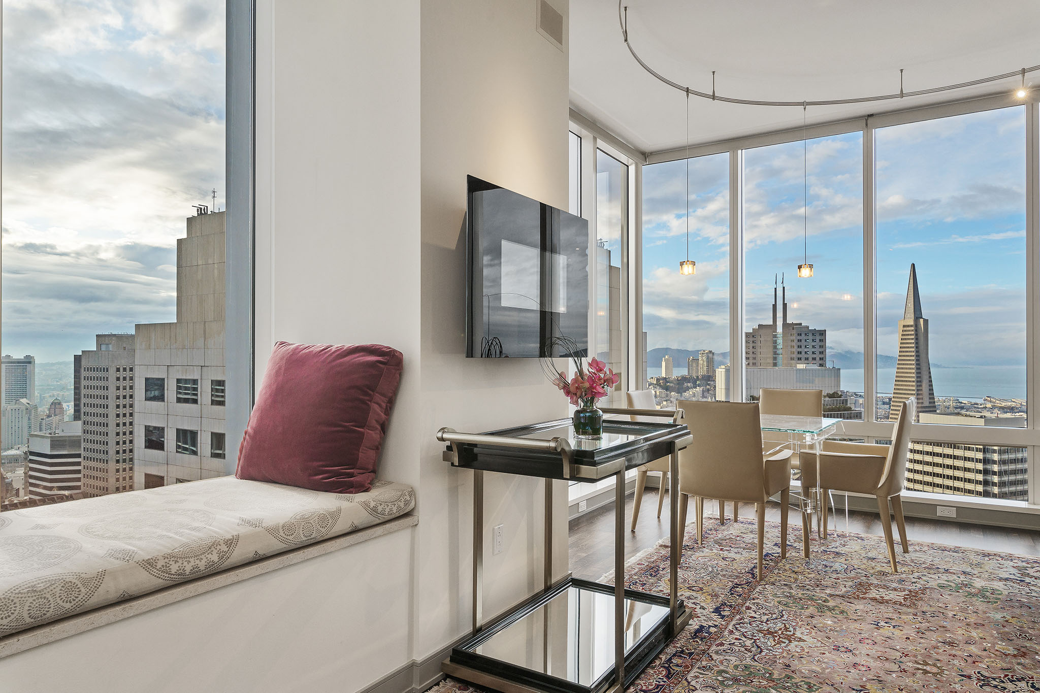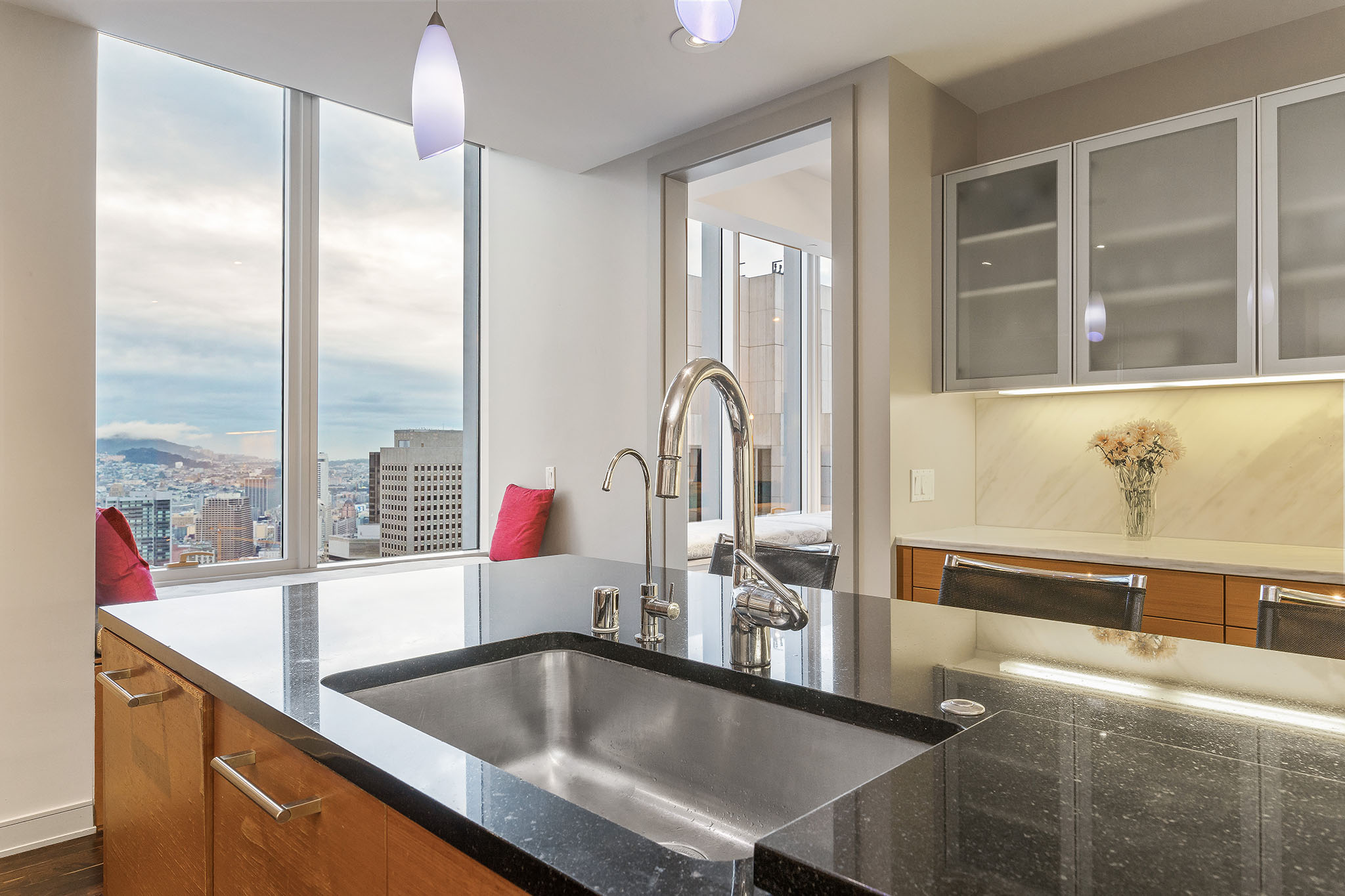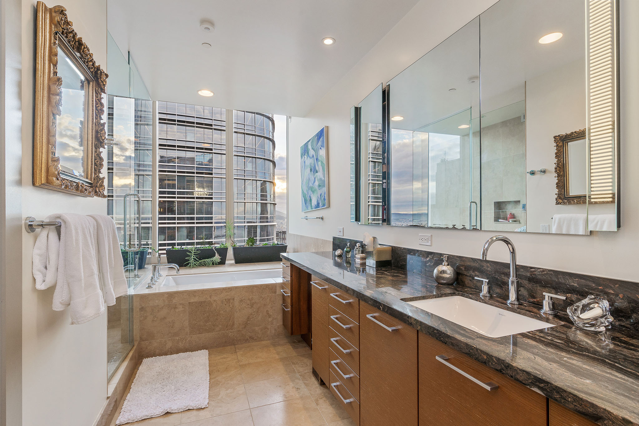 Building amenities include an elegant, spacious club level offering a fitness facility, yoga studio, massage room, and 75 foot indoor lap pool with hot tub. The exclusive owners only private bar and lounge is serviced by International Smoke, Ayesha Curry and Michael Mina’s latest collaboration. The climate controlled wine cellar opens to the private tasting room. The Screening room, Children’s Playroom and Outdoor Terrace complete the amenities.