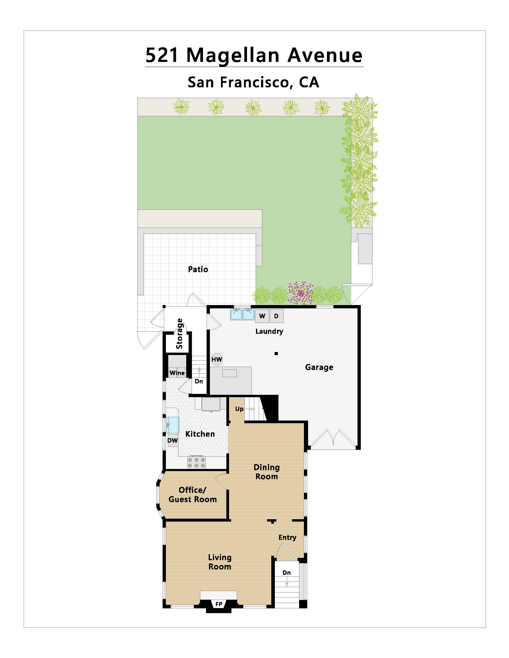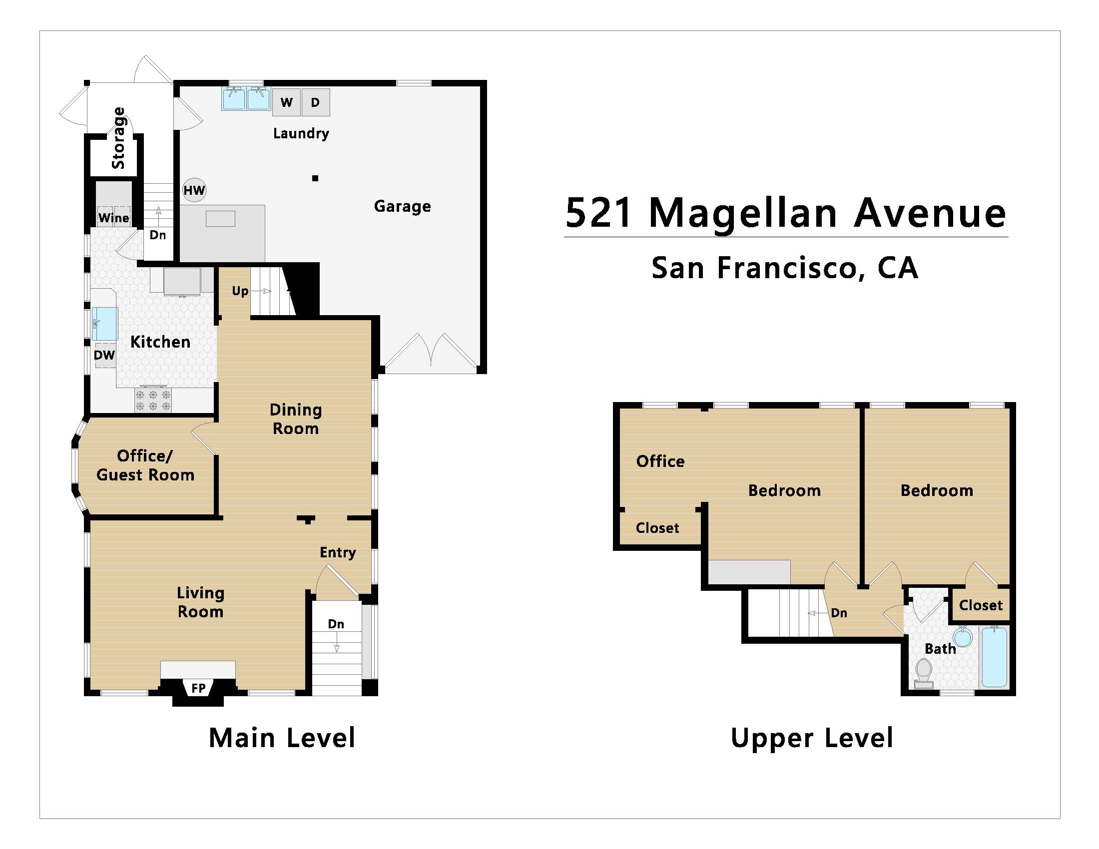 This charming split-level Craftsman is situated on one of the best blocks in Forest Hill. Possessing all the artisanal beauty of 1920 architecture- preserved woodwork, built-ins, & hardwood floors- this home will envelop you upon entering. An abundance of natural light graces the enormous living room with firepace and dining room. The recently updated kitchen with stainless steel appliances and double wine fridge and separate office complete the main level. Two spacious bedrooms and a full bathroom round out this charmer. Storage and laundry in the garage/lower level or potential as play area/bonus space. Fully detached with front yard and huge rear patio and yard, perfect for entertaining or a furry friend. Ideally located on tree-lined Magellan within a few blocks to the shops and restaurants of West Portal Avenue, West Portal Elementary, Library, Muni and additional shops on Taraval.