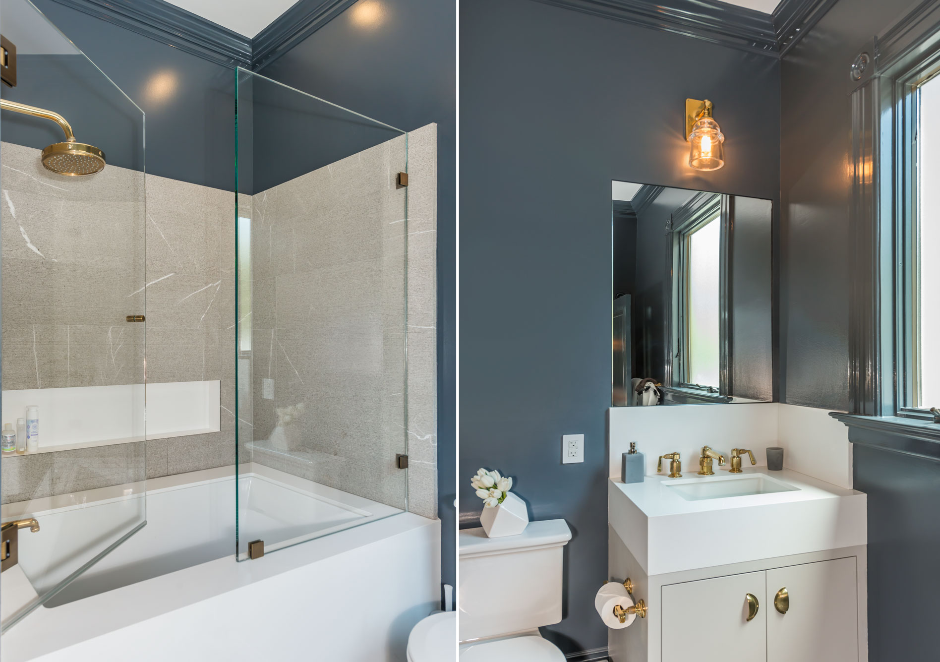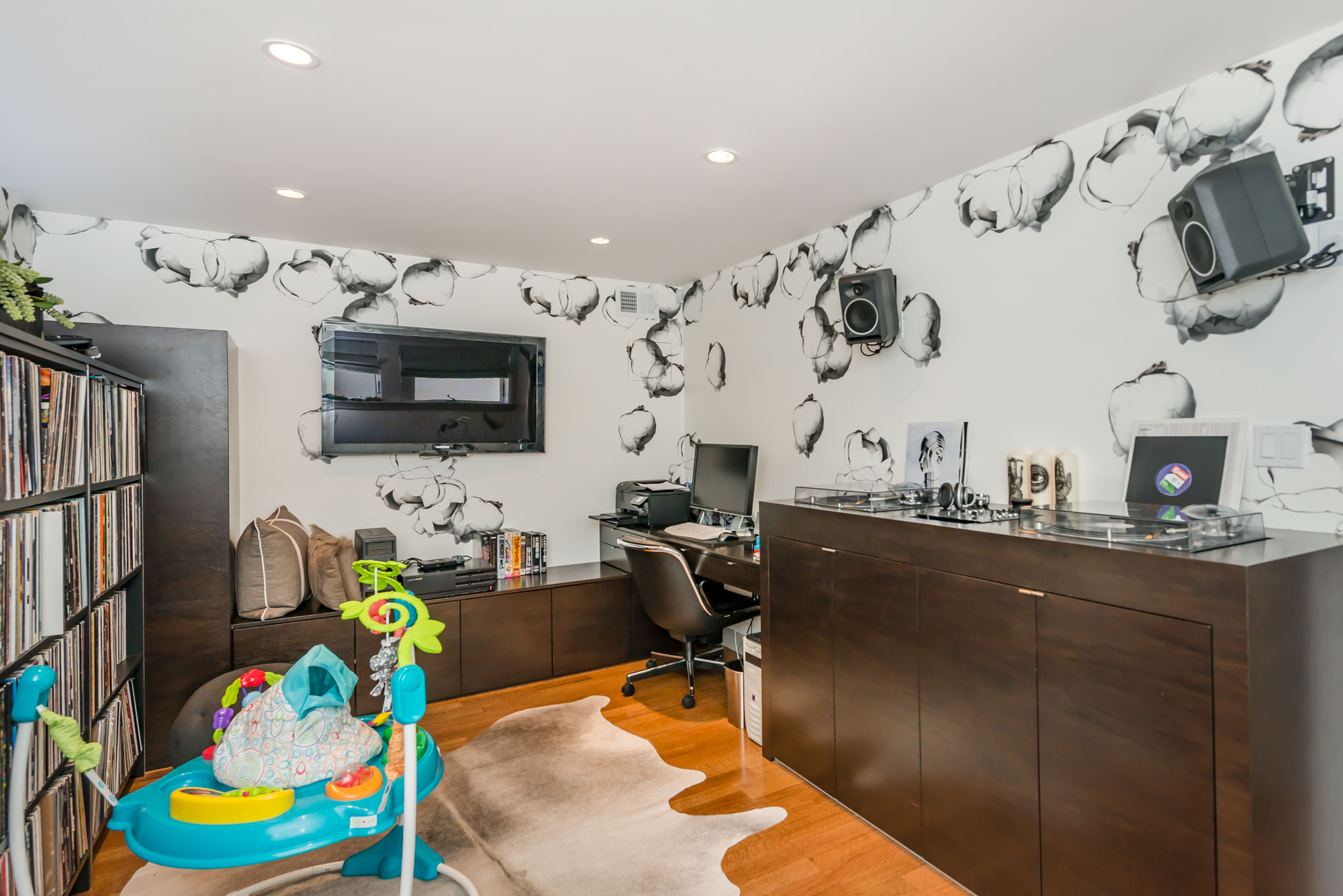The upper level offers two generous bedrooms, a full bathroom and a magnificent master suite with a luxurious master bath featuring Waterworks lighting and Ann Sacks marble tile. The garden level offers a generous media room complete with a wet bar, bathroom and additional office.