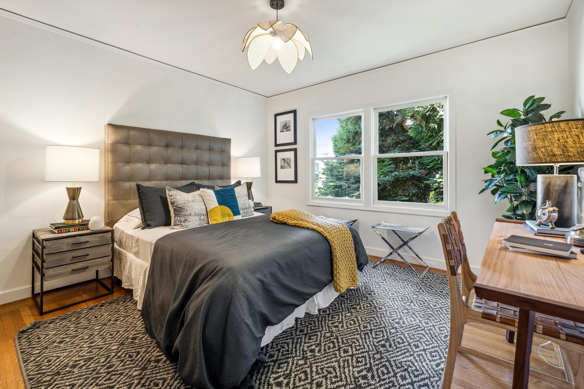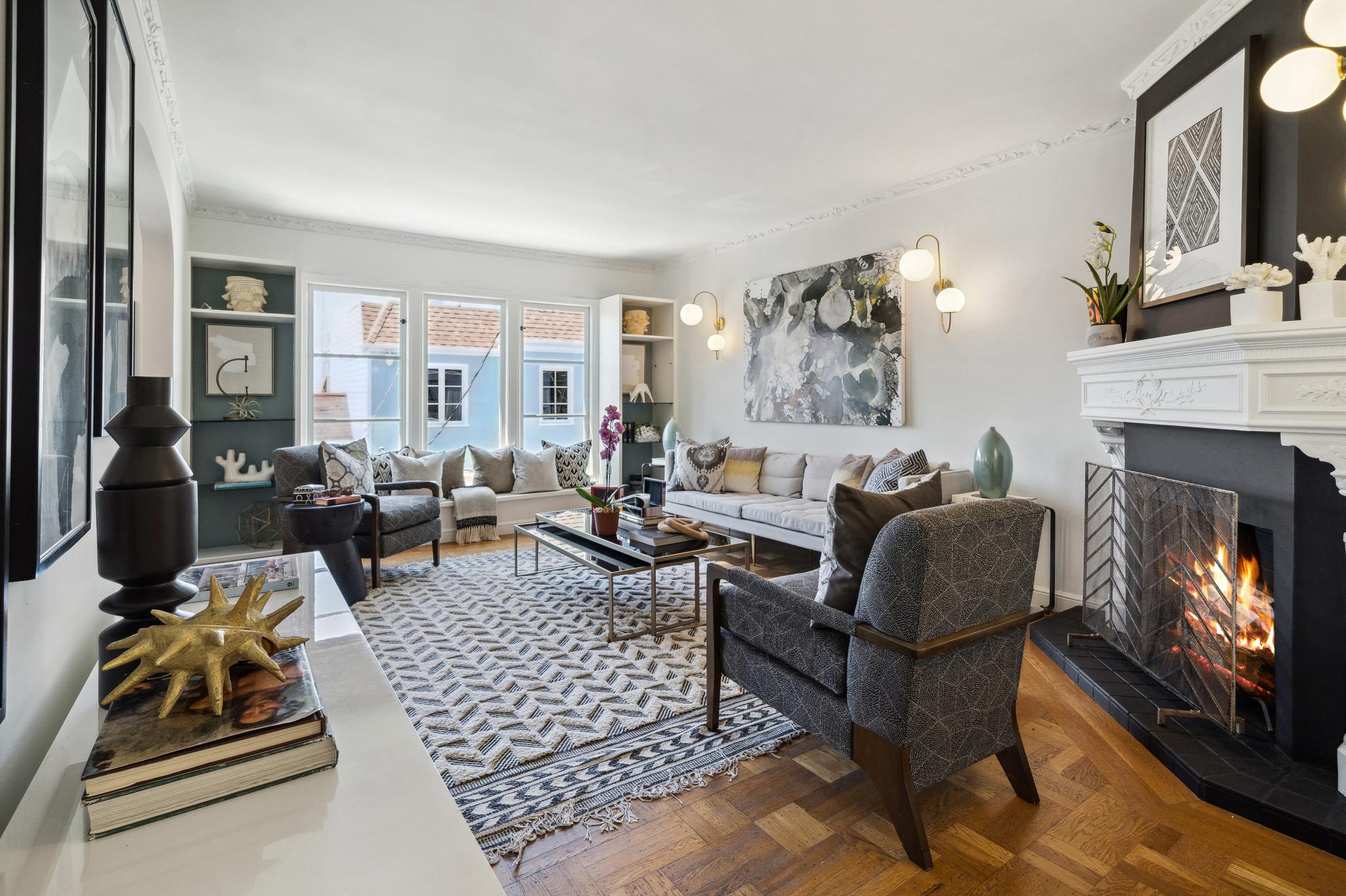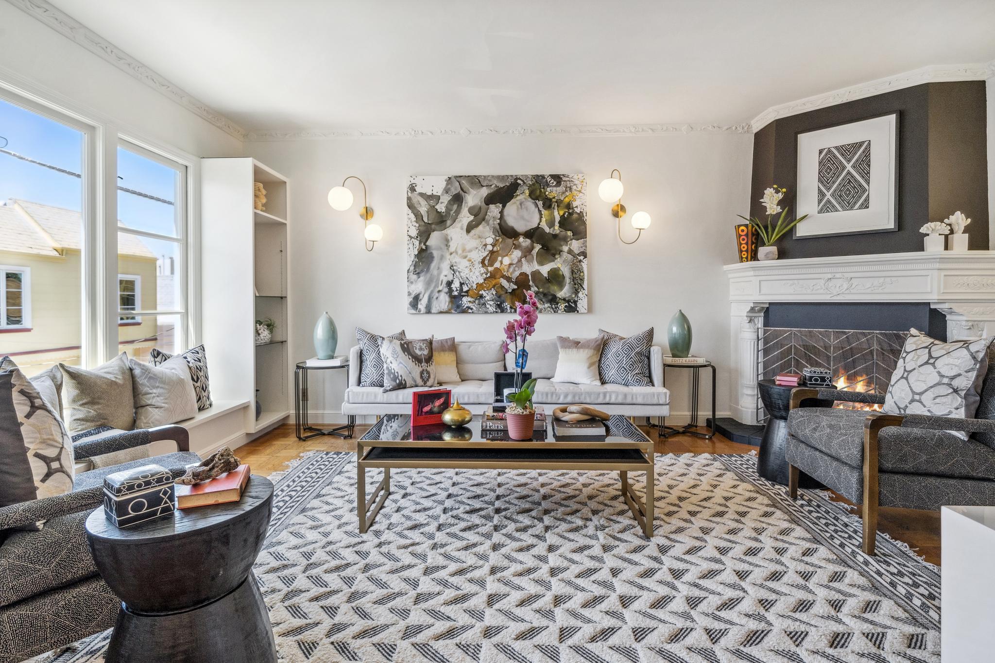 Welcome to this charming top-floor 2-bedroom, 1-bathroom condo, centrally located in the heart of Mission Dolores. Upon entering, you’ll be greeted by a spacious living area featuring a lovely fireplace, large windows, and original detailing. The cohesive layout seamlessly connects the living room to the dining room, perfect for enjoying delicious meals with family and friends. The bright kitchen is well-equipped with ample storage and access to the shared roof deck. Two comfortable bedrooms in the back of the condo offer peace and privacy overlooking the yard. The updated bathroom has a separate tub and shower. The shared roof deck is a perfect outdoor space for enjoying the beautiful San Francisco weather. The garage features one car side-by-side parking, laundry, and additional storage. The ultimate in urban convenience, this home is within blocks to everything you could want- shopping, dining, and entertainment options plus parks and public transportation. Don’t miss out on the opportunity to make this delightful home your own.